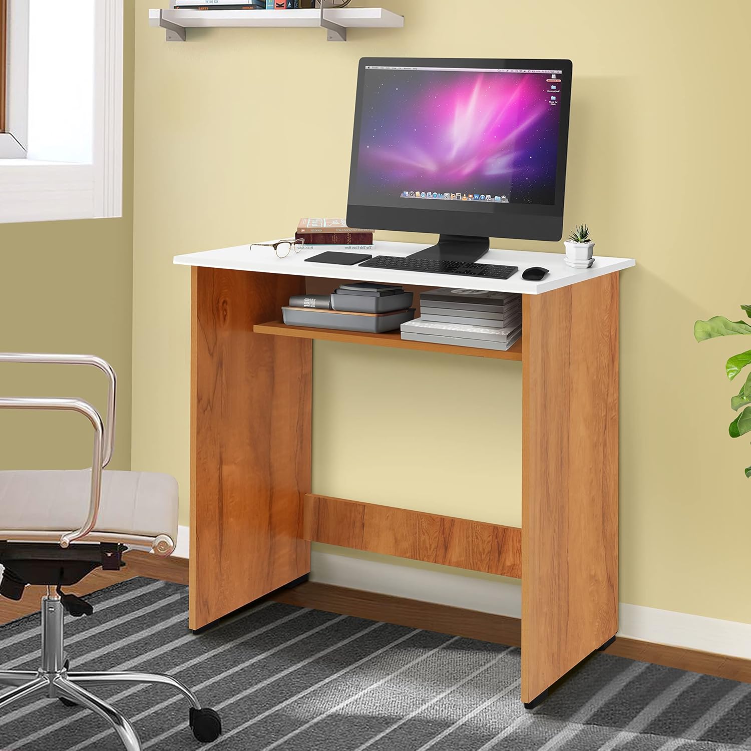 - UNDER DESK SHELF: The study table has a strong open shelf under the spacious desktop, you could keep your stationeries, books, gadgets and many items within your reach, making you more efficient at your work