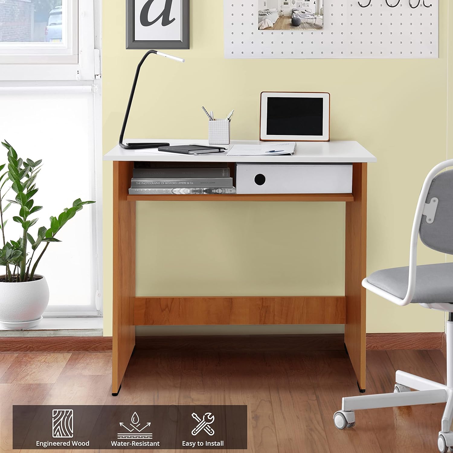 - MATERIAL & DIMENSION: Made with brown finish engineered wood for durability. The work table measures L 80 x B 45 x H 76.5 cm