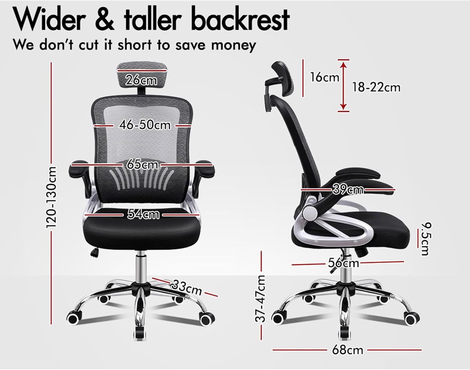 - Wide backrest: Compared to mesh chairs with narrow backrest, the ALFORDSON office chair with the widened upper backrest offers a full hug of your upper back and strong support for your lower back with a strong integrated lumbar support. Perfectly protects 5 regions of your spine - cervical spine, thoracic, lumbar, sacrum and tailbone.