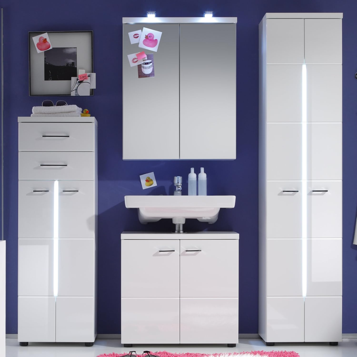 Trendteam Smart Living Nightlife Bathroom Sink Vanity Unit, 65 x 63 x 35 cm, High-Gloss White with Lots of Storage Space