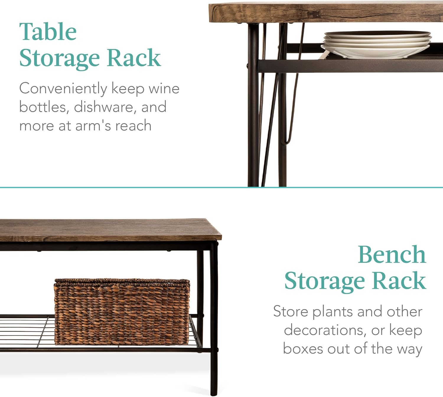 - BUILT-IN STORAGE RACKS: Metal racks under the tabletop and the bench can conveniently hold books, board games, seat cushions, blankets, table mats, coasters, and much more