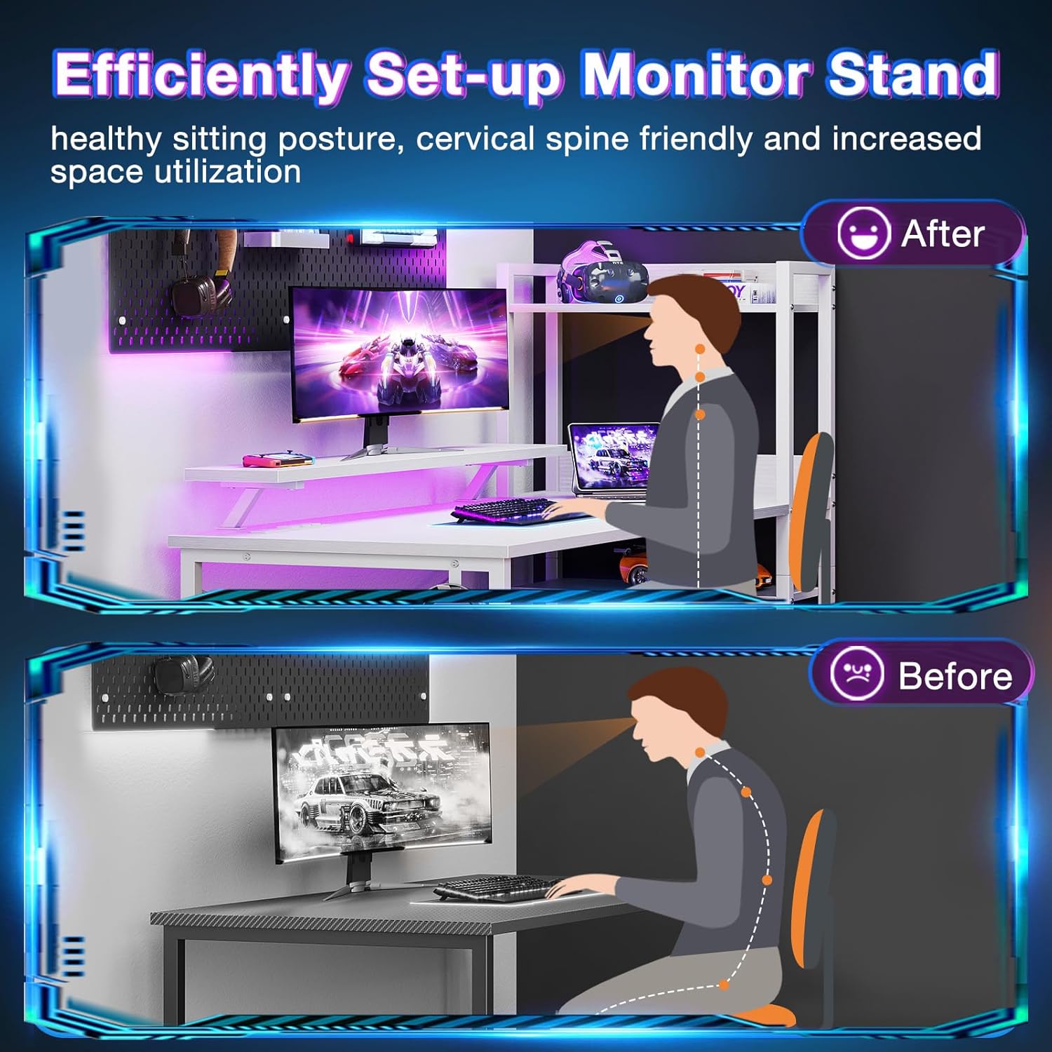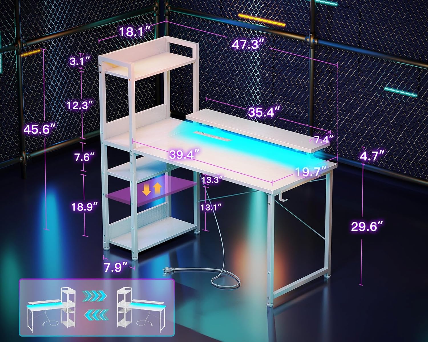 - ?Spacious and Adjustable?The desk features a 39.4”(W) x 19.7”(D) tabletop and 35.4”(W) x 7.4”(D) monitor stand, providing ample workspace. With 7.9"(W) x 18.1"(D) x 45.6"(H) open shelves that can be installed on either side of the desk, you have versatile storage options for your office supplies, computer cases, and more.