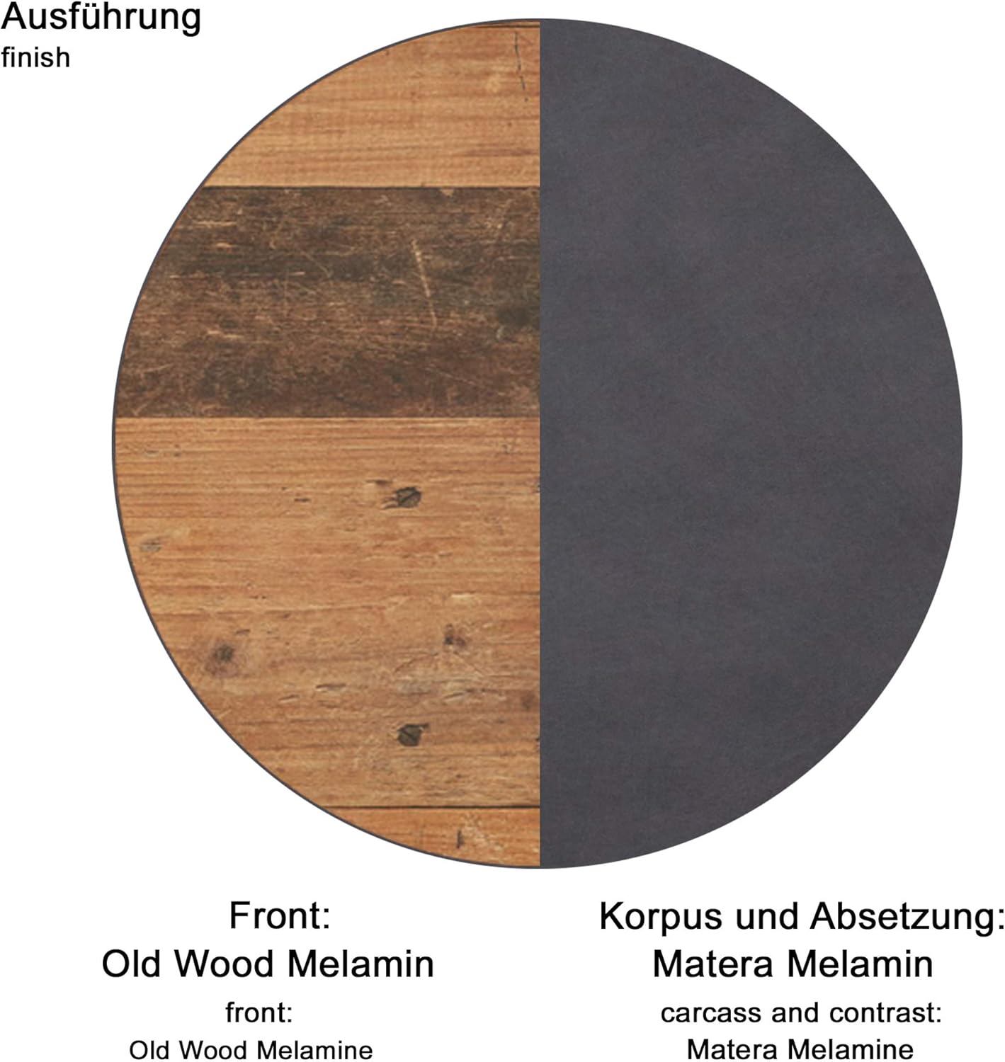 • Modern, easy-care vanity unit with two doors in front old wood melamine and body and Matera melamine trim