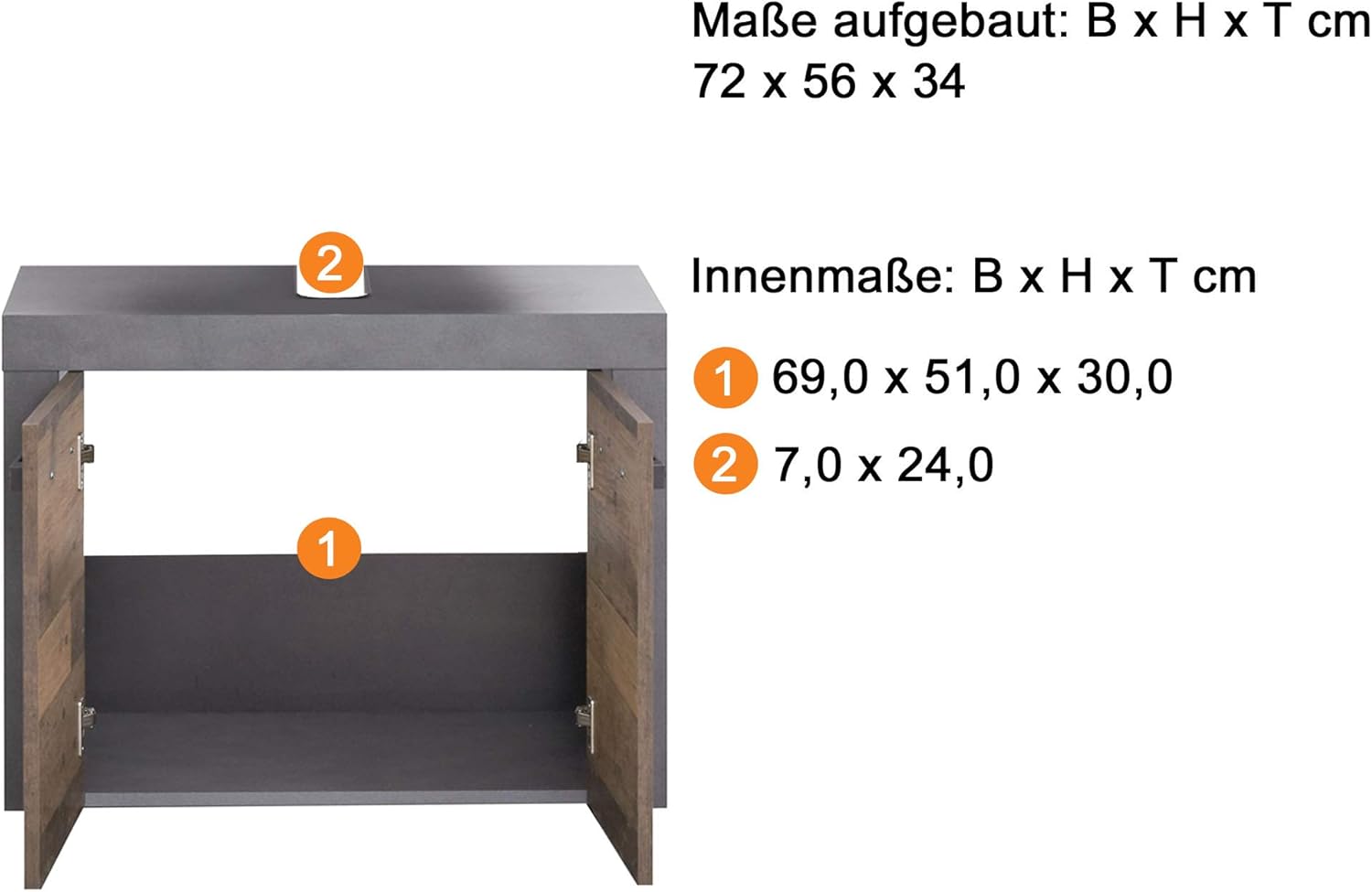 trendteam smart living Indy Bathroom Vanity Unit 72 x 56 x 34 cm in Old Wood Front with Matera Body and Panel with Lots of Storage Space