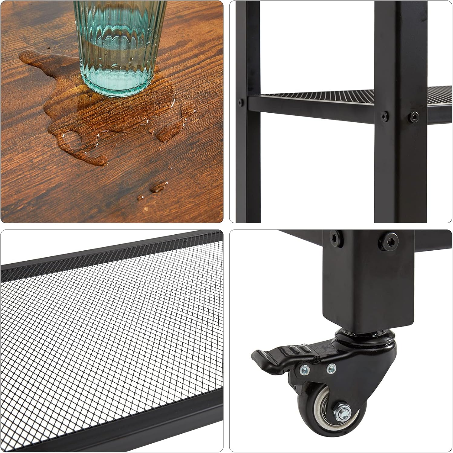 IBUYKE Serving Cart Trolley 60x40x81cm, Industrial Kitchen 3 Levels Shelves, Rolling Utility Cart with 4 Wheels, Heavy Duty Storage Organiser for Kitchen living room TMJ011H