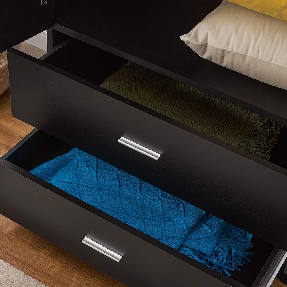 Panana 2 Door 2 Drawer Wardrobe with Hanging Rail Wooden Clothes Storage Cupboards Unit for Bedroom Furniture 76.8 * 50 * 180cm (Black)