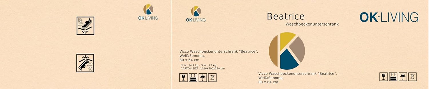 - Box contents: vanity unit, assembly instructions (English language not guaranteed), mounting material.