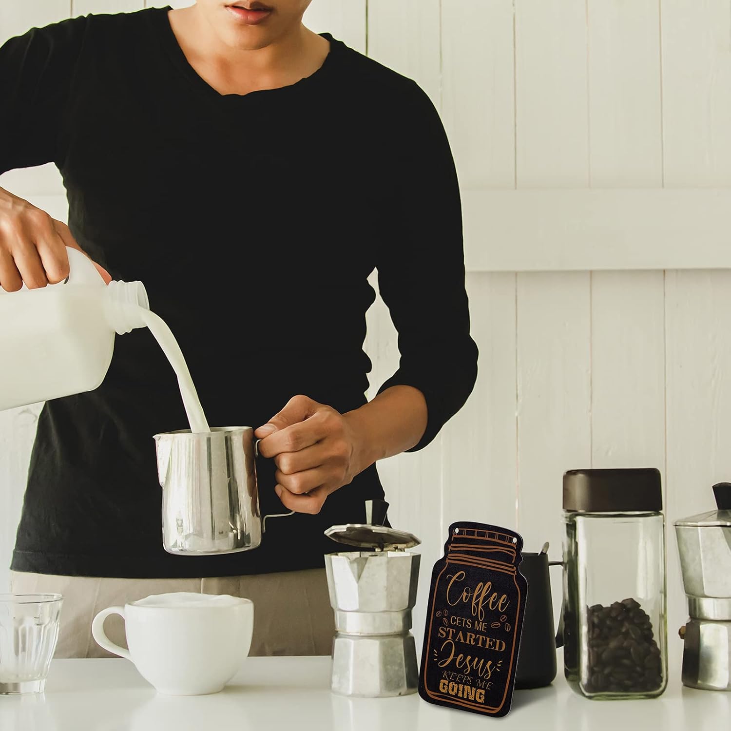 • Jetec 3 Pcs Coffee Bar Sign Mason Jar Wall Hanging Plaque Farmhouse Kitchen Decor Wooden Sign for Home Living Room Wall Decorations