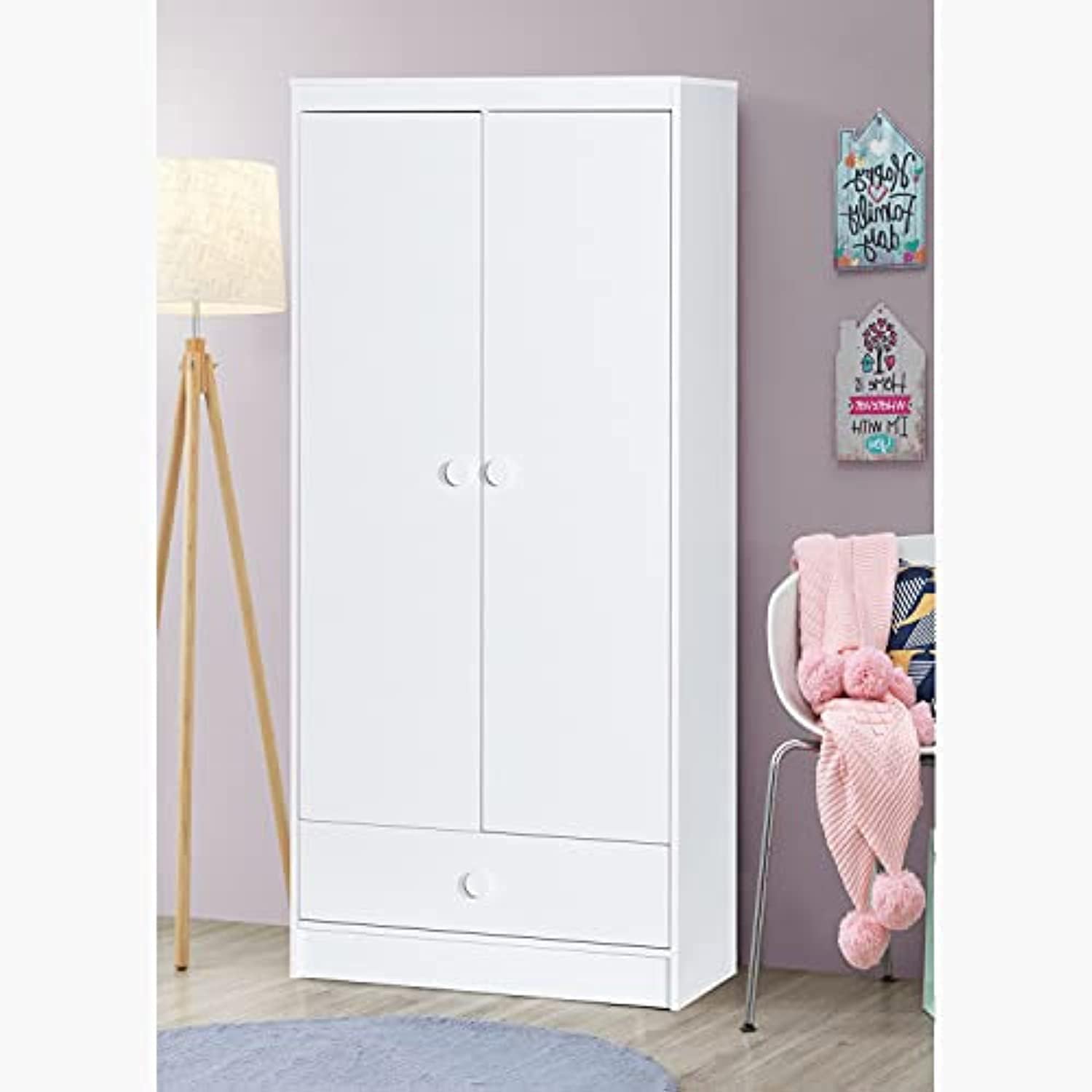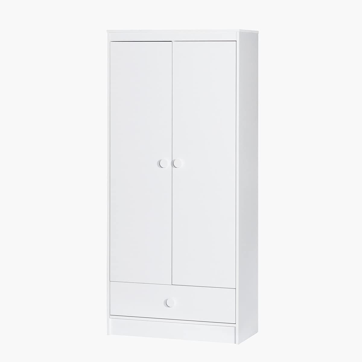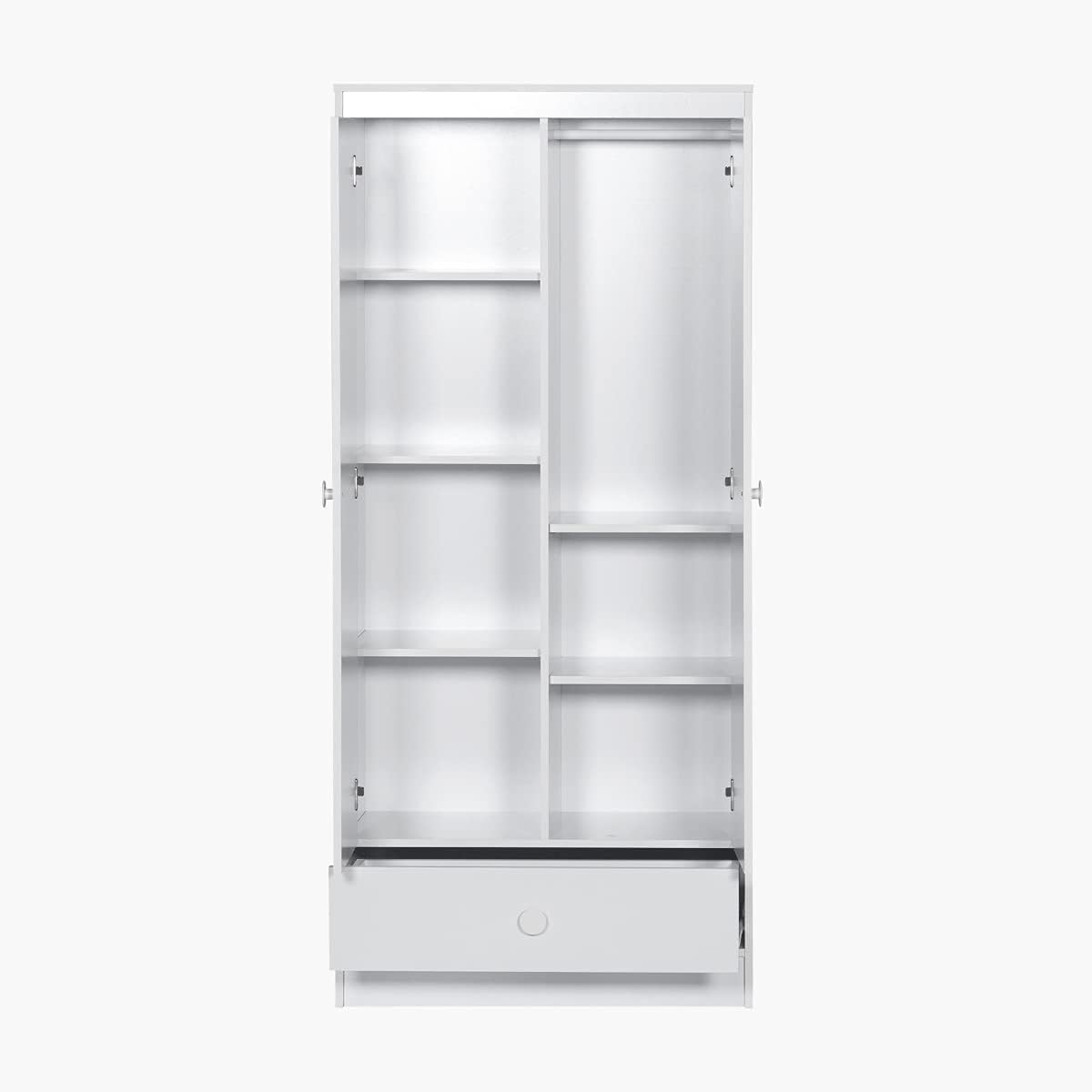 - This two-door wardrobe features an engineered wood and a veneer finish which heightens its overall appeal. This classic wardrobe has one drawer and ample space to store your essentials. You can wipe clean this durable unit for its upkeep.