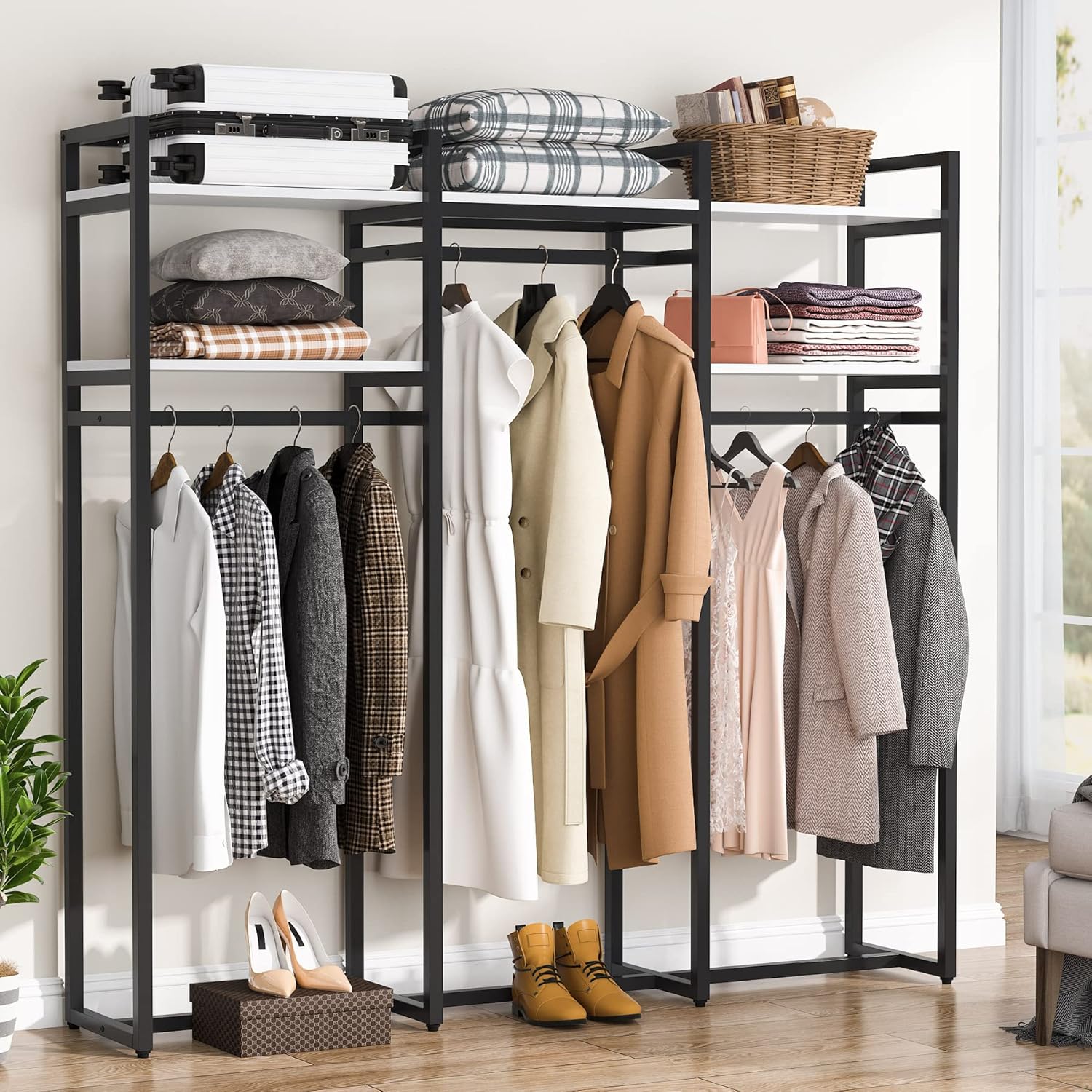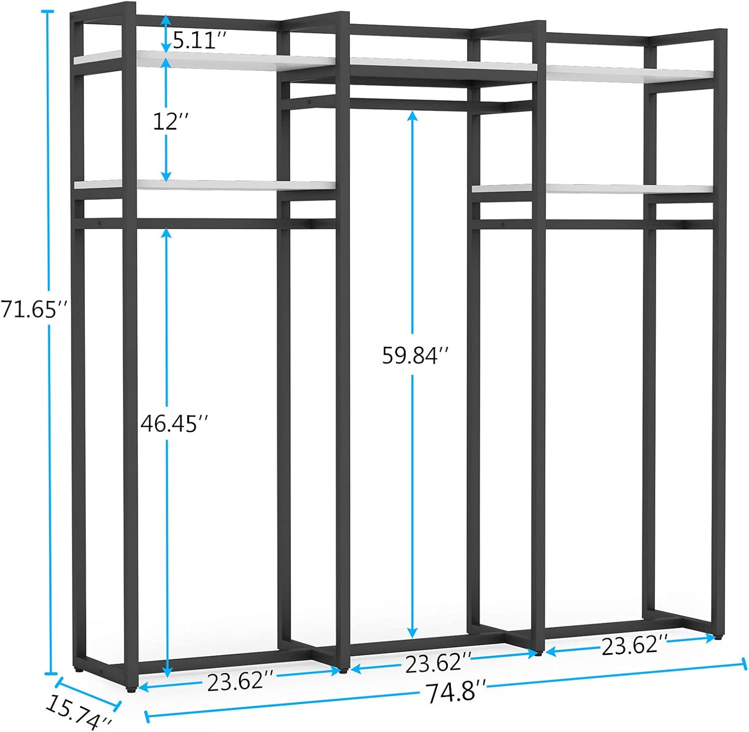 Tribesigns Freestanding Closet Organizer, 75 inch Clothing Rack with Shelves, Heavy Duty Garment Rack Wardrobe Closet with Hanging Rods