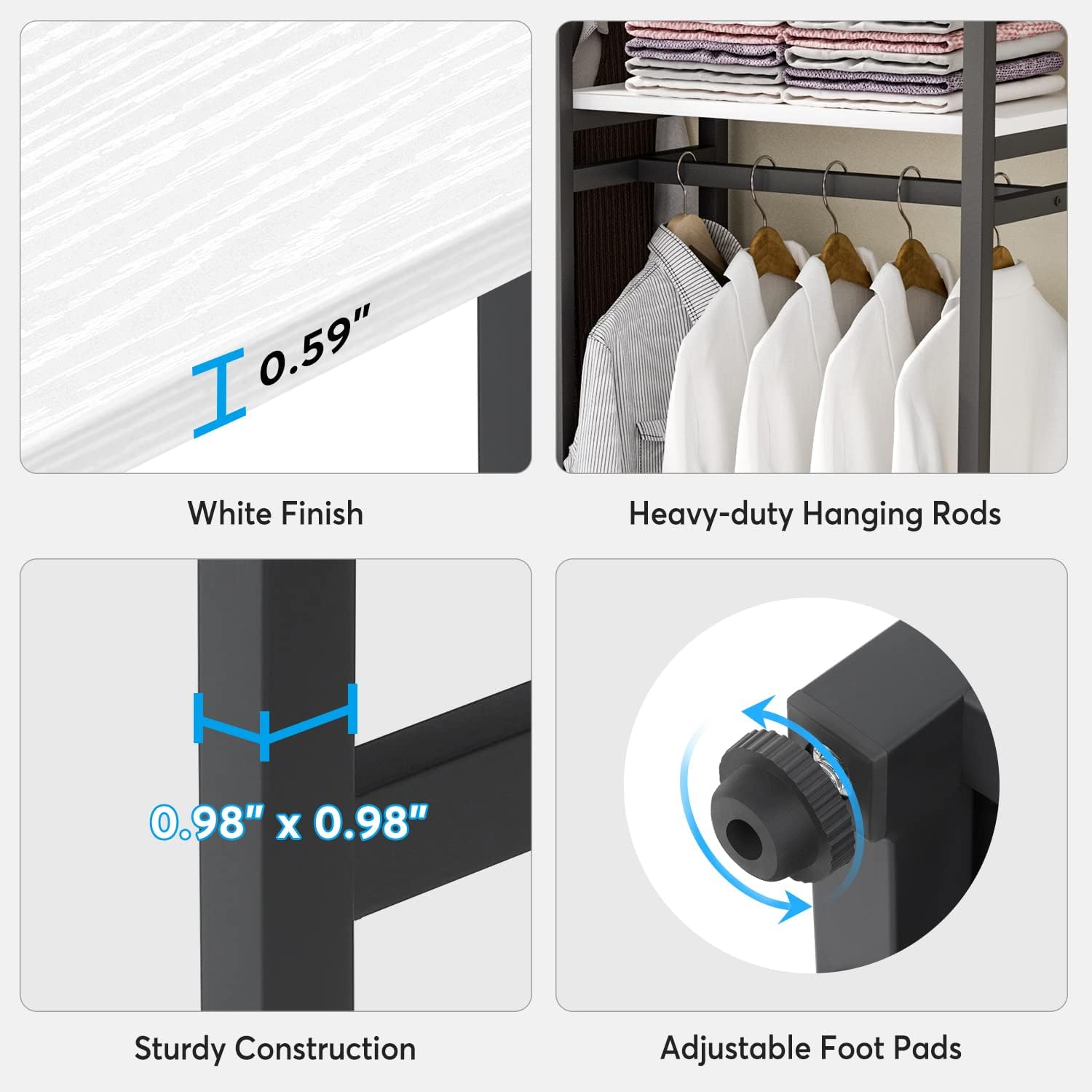 - ?Sturdy & Solid Construction?Crafted from particle boards and metal frames which are reinforced by fasteners to ensure the stability, this free-standing closet organizer is of high quality, durability and can last for years.