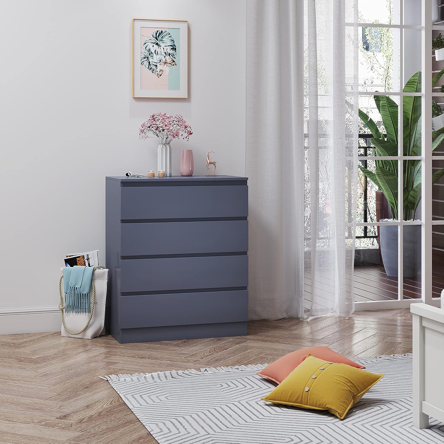 Panana Wooden 3/4/5/6 Chest Of Drawers with Metal Runner Modern Bedroom Bedside Storage Cabinet Unit for Hallway Living Room (Gray, 4 Drawer Chest)