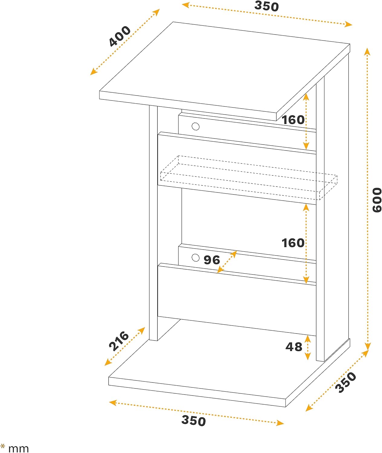- Important: this wooden furniture is only suitable for indoor use. Storage area 350 mm wide, 400 mm deep, frame 600 mm high