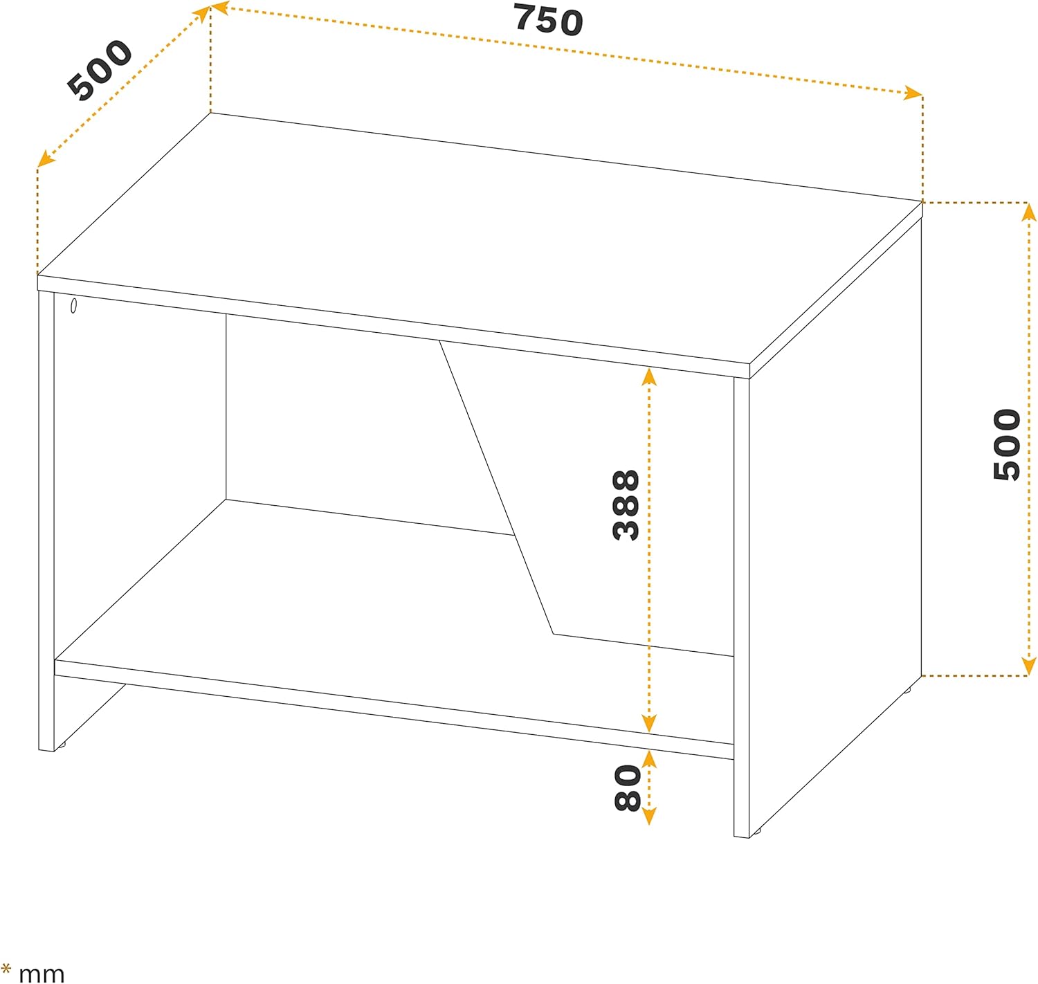 • Important: This wooden furniture made of pressed board is only suitable for indoor use. Dimensions: 750 mm wide, 500 mm high, 500 mm deep.