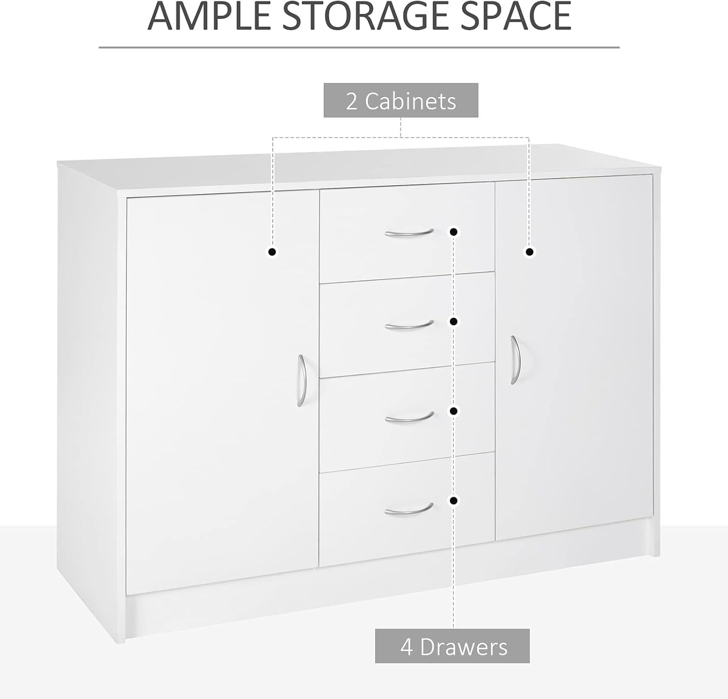HOMCOM Sideboard, Storage Cabinet with 2 Doors and 4 Drawers, Free Standing Cupboard, Chest Organizer for Kitchen and Living Room, White