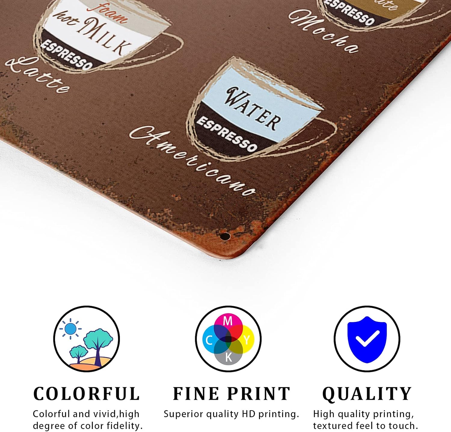 - ???MATERIAL- Know your coffee tin sign?Our vintage funny coffee signs are made of first-class metal tin, this versatile and durable tin sign are weather resistant and water- proofe and good ductility, the edges of the coffee menu sign are rounded and curled, which is very safe recyclable. Cats tin sign is the unique uv printing technology, an effect applied to the print to make it look older give it more character, it will stay good as new even after many years of indoor or outdoor use.