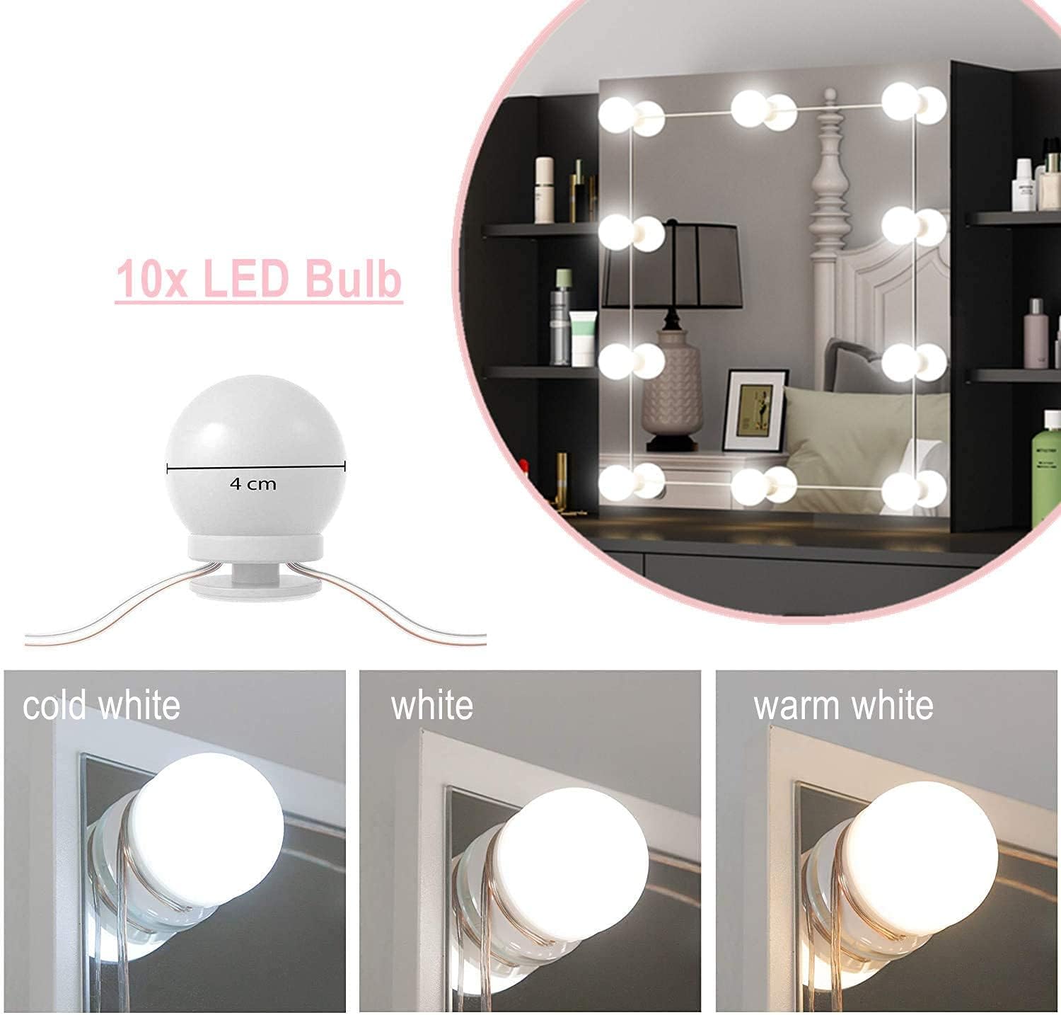 - ??DRESSING TABLE WITH LIGHTED MIRROR?LET YOUR BEAUTY SHINE?? Square sliding mirror equipped with 10 dimmable light bulbs and 3 color options, this dressing table provides you with super-bright lighting conditions, leading you to experience the makeup environment of Hollywood dressing rooms. Say goodbye to makeup flaws that can't be seen in a single dull mirror and admire your outfit in the large. You looks great and pretty!!!