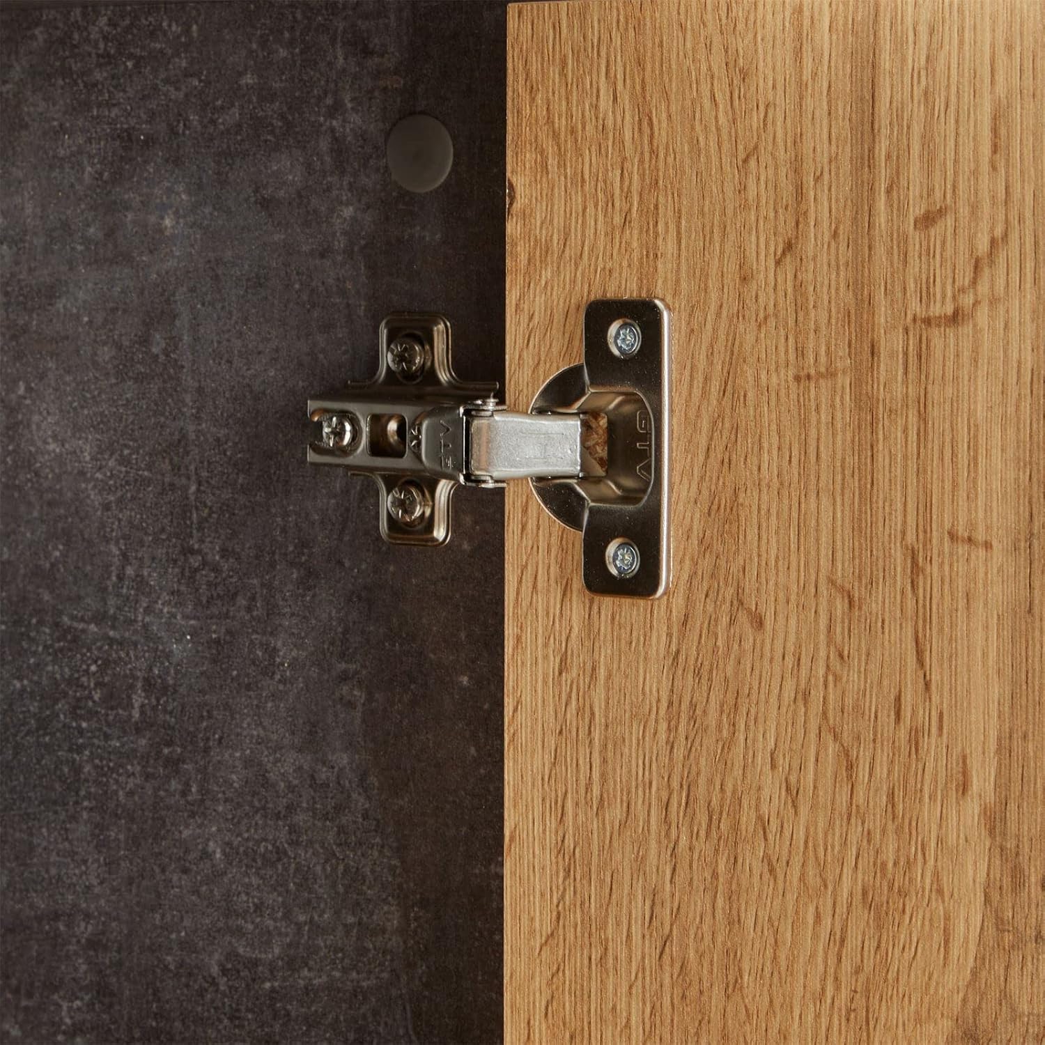 - The melamine resin-coated surface of the chest of drawers is available in concrete dark/Wotan oak and is very friction- and scratch-resistant, and durable