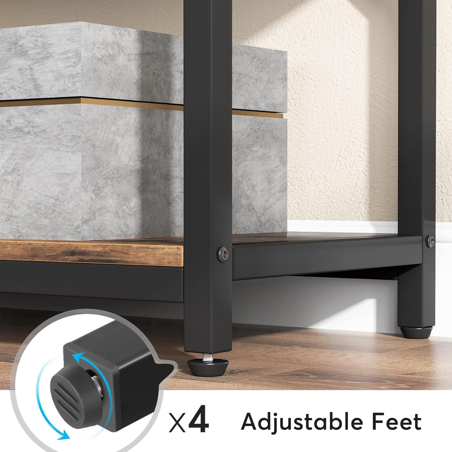 • ? ?Sturdy Step Shelving?:Super Solid and made well. Crafted of a heavy duty metal frame combined with high-grade rustic particle board which guarantees durability and stability, hold quite a bit of weight without bending out of shape.