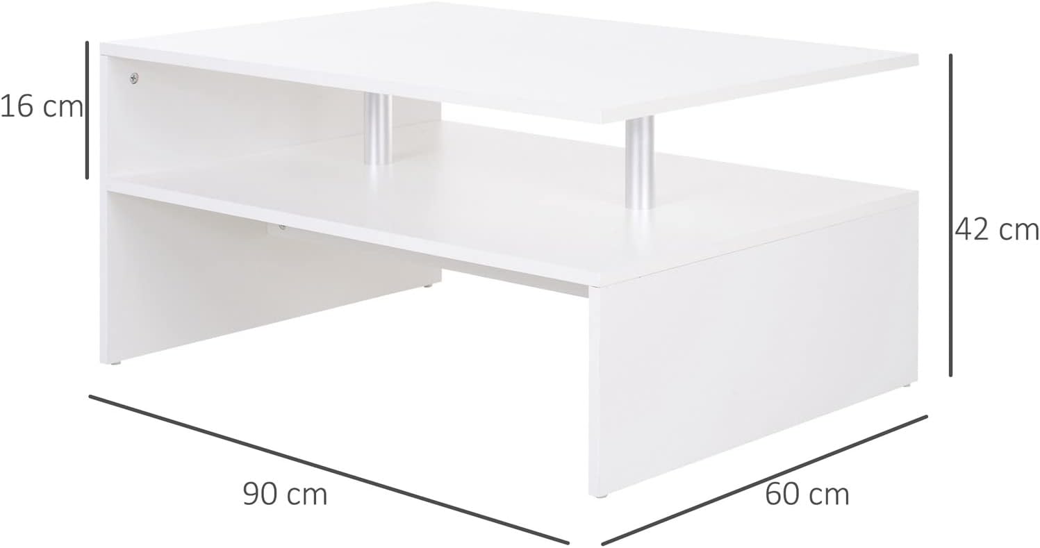 Home gallery 2 tier coffee table with open shelf - white,X-Large,H00487