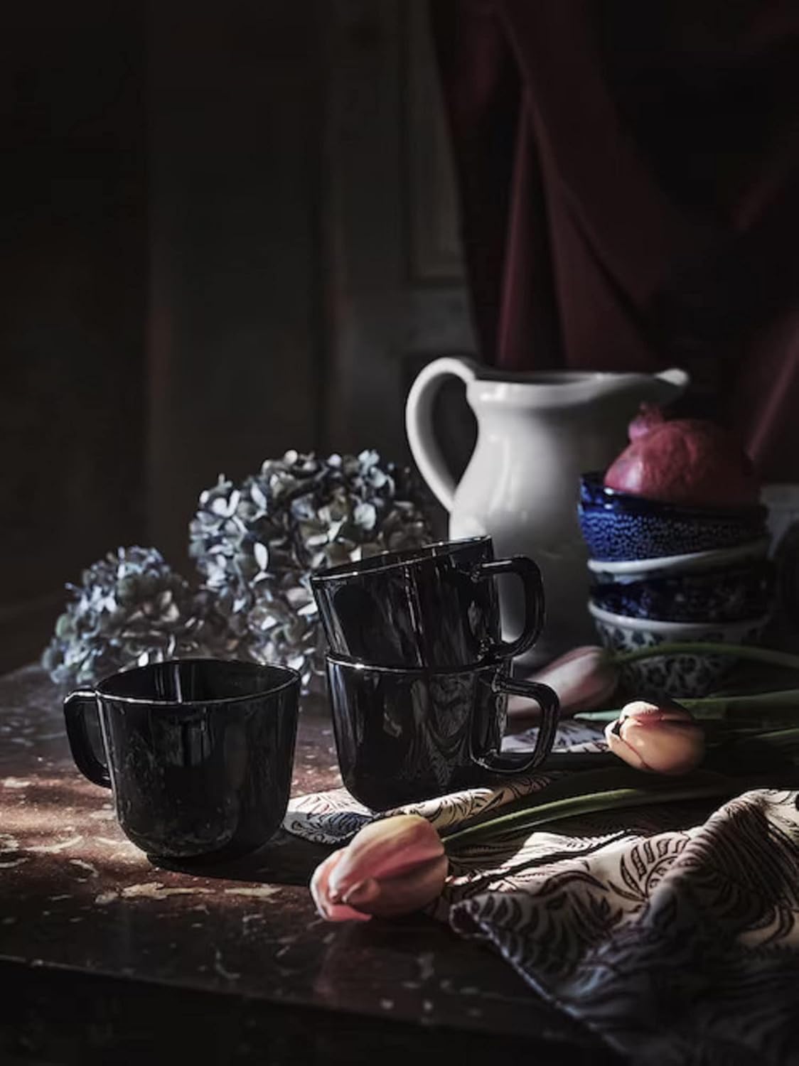IKEA Little Loved Corner BACKIG Glass Coffee Mug, Black - 370 ml