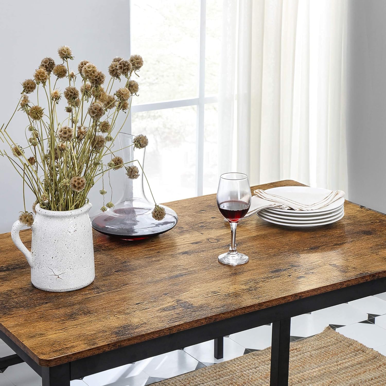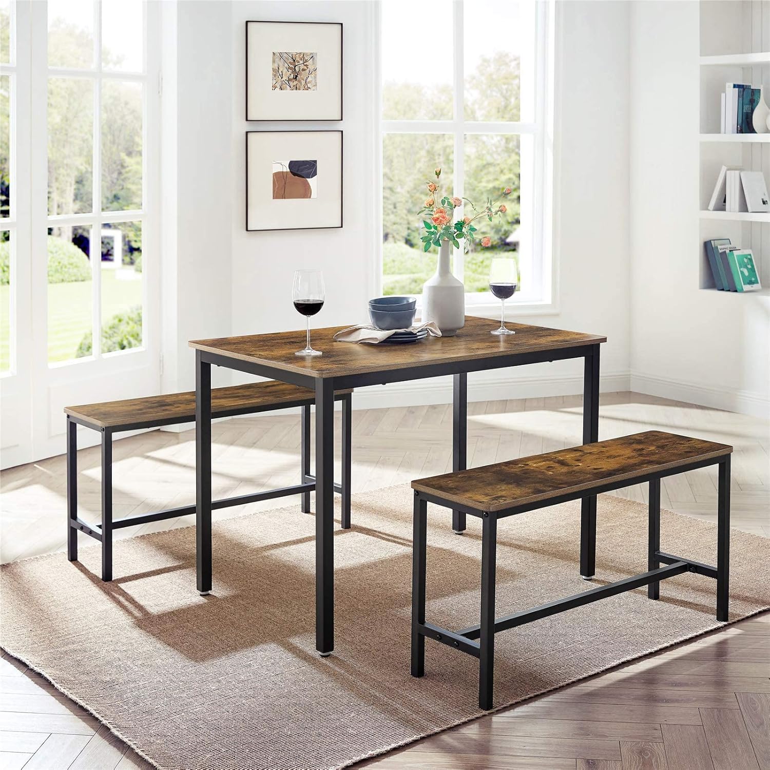 Vasagle Dining Table With 2 Benches, 3 Pieces Set, Kitchen Table Of 110 X 70 X 75 Cm, 2 Benches Of 97 X 30 X 50 Cm Each, Steel Frame, Industrial Design, Rustic Brown And Black Kdt070B01