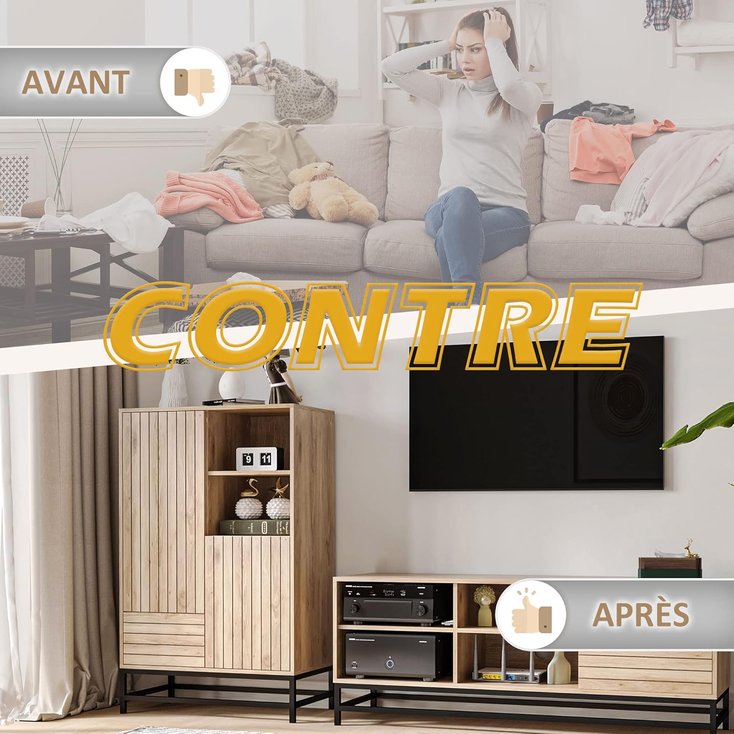 - SECURE: Living room storage unit equipped with anti-tip straps to fix it to the wall and prevent it from tipping forward.