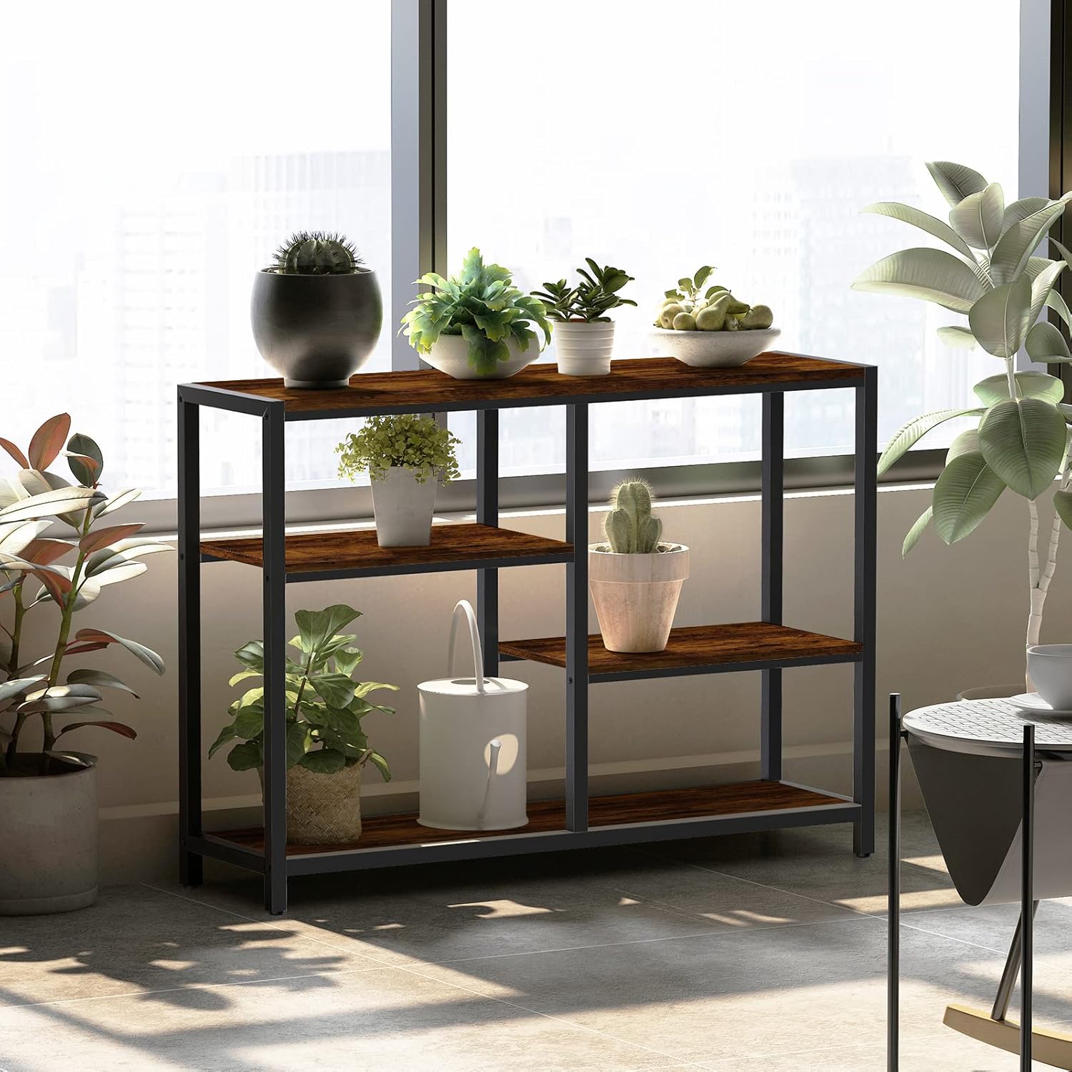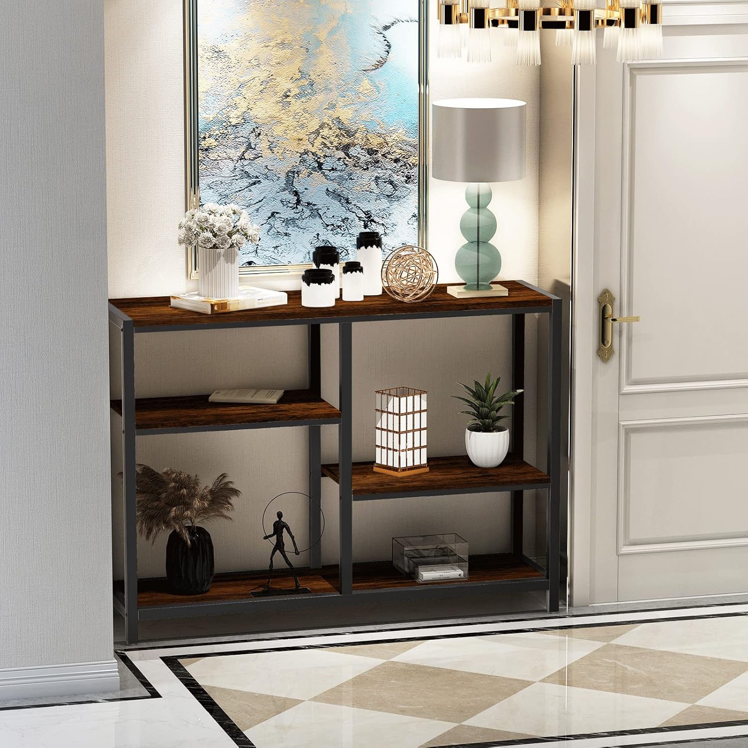furduzz Console Table -41 Inch Narrow Entryway Table with 3-Tier Shelves, Industrial Sofa Table for Living Room,Front Hall, Hallway,Dinning Room,Kitchen, Bedroom,Coffee Bar,Rustic Brown Foyer Table