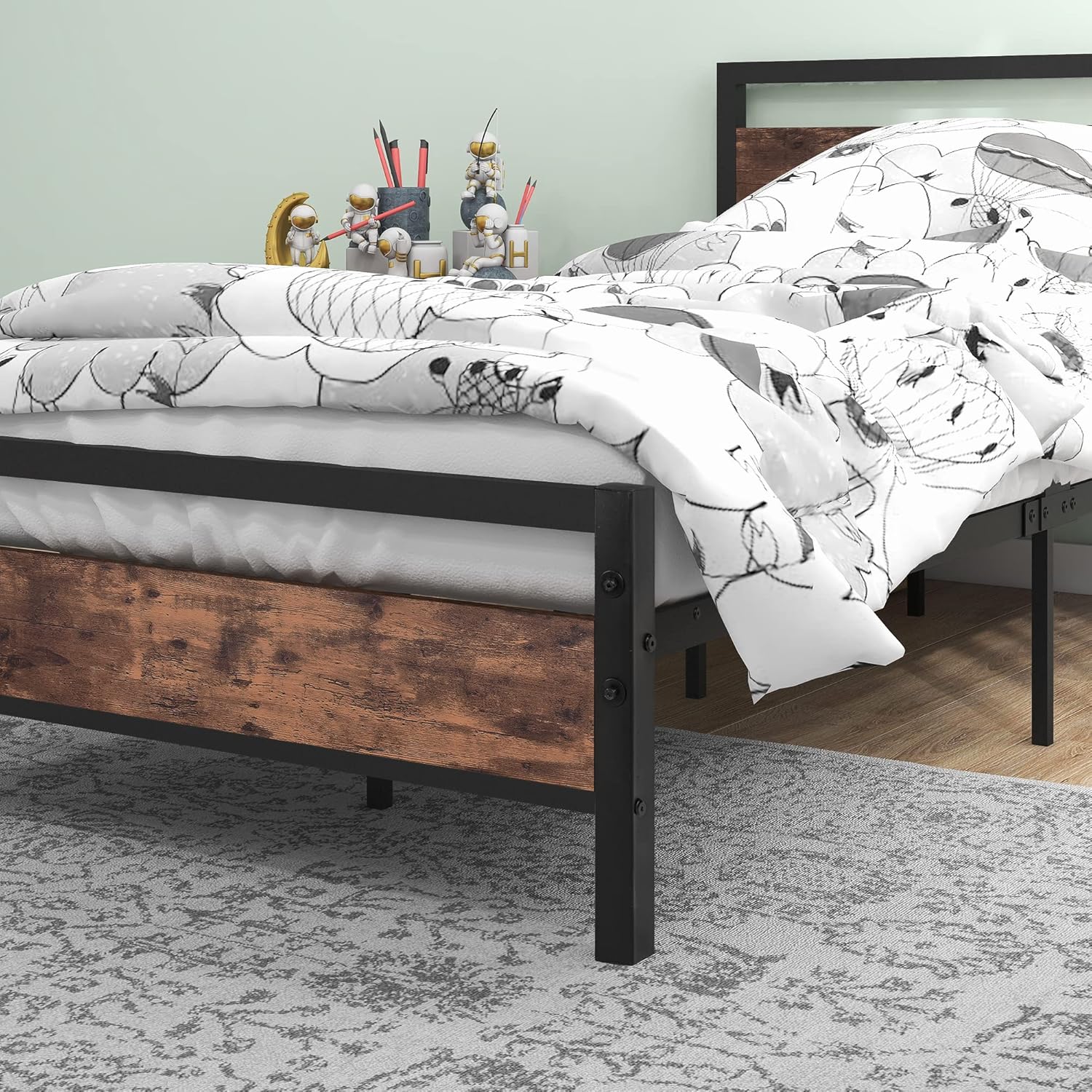 BOFENG 3ft Single Bed Frames Solid Bedstead Base with Wood Headboard,Heavy Duty Metal Platform Bed Frame No Box Spring Needed,Mattress Base/Metal Slat Support/Underbed Storage Space/Rustic Brown