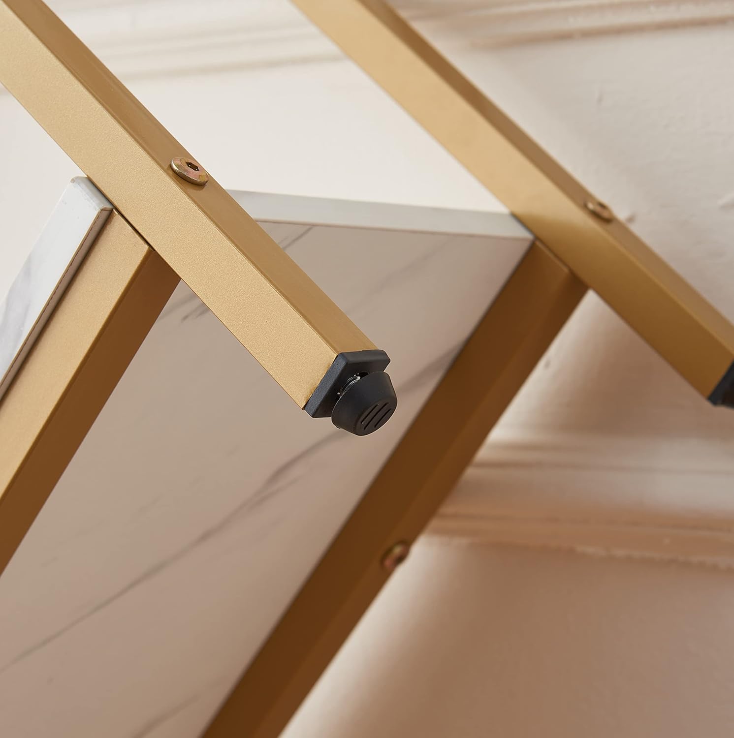 loglus Console Table for Entryway, Faux Marble MDF Sofa Table with Golden Frame (Double Layer,Single Layer, White Marble)
