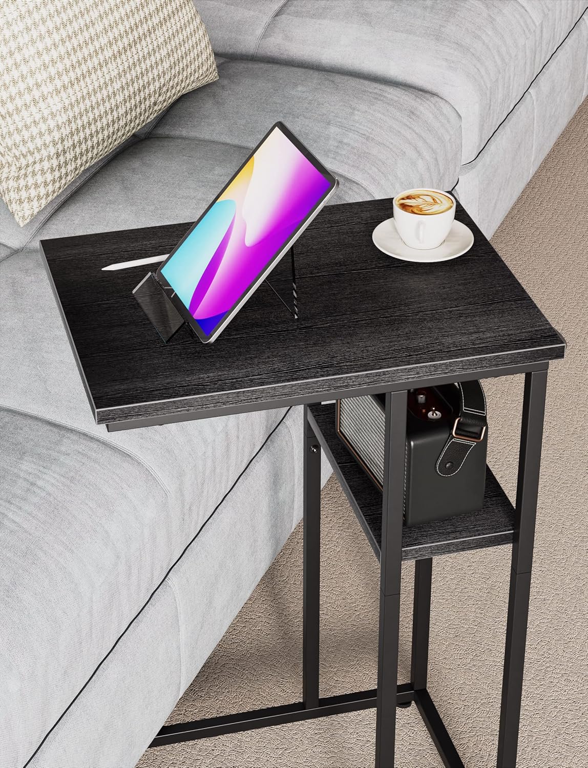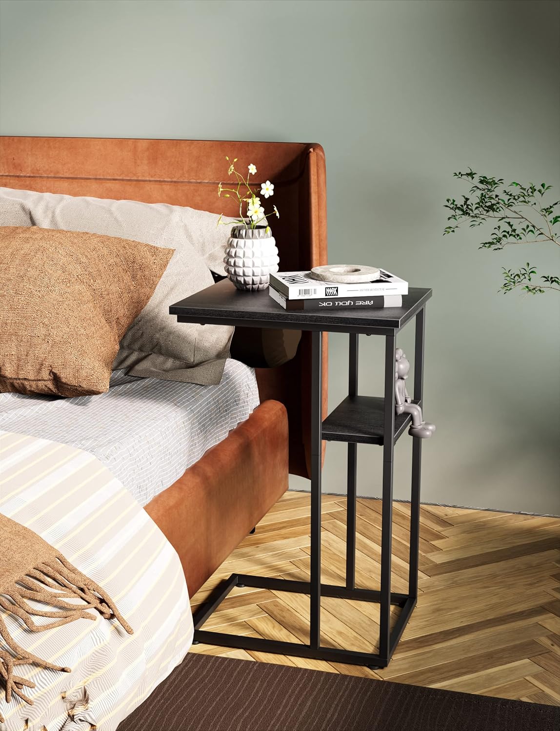 • Design with C Shape - Slide the C side table for sofa under your couch for a comfortable and organized living room, good for snacks, coffee, work-from-home needs, creating a clutter-free and relaxing environment