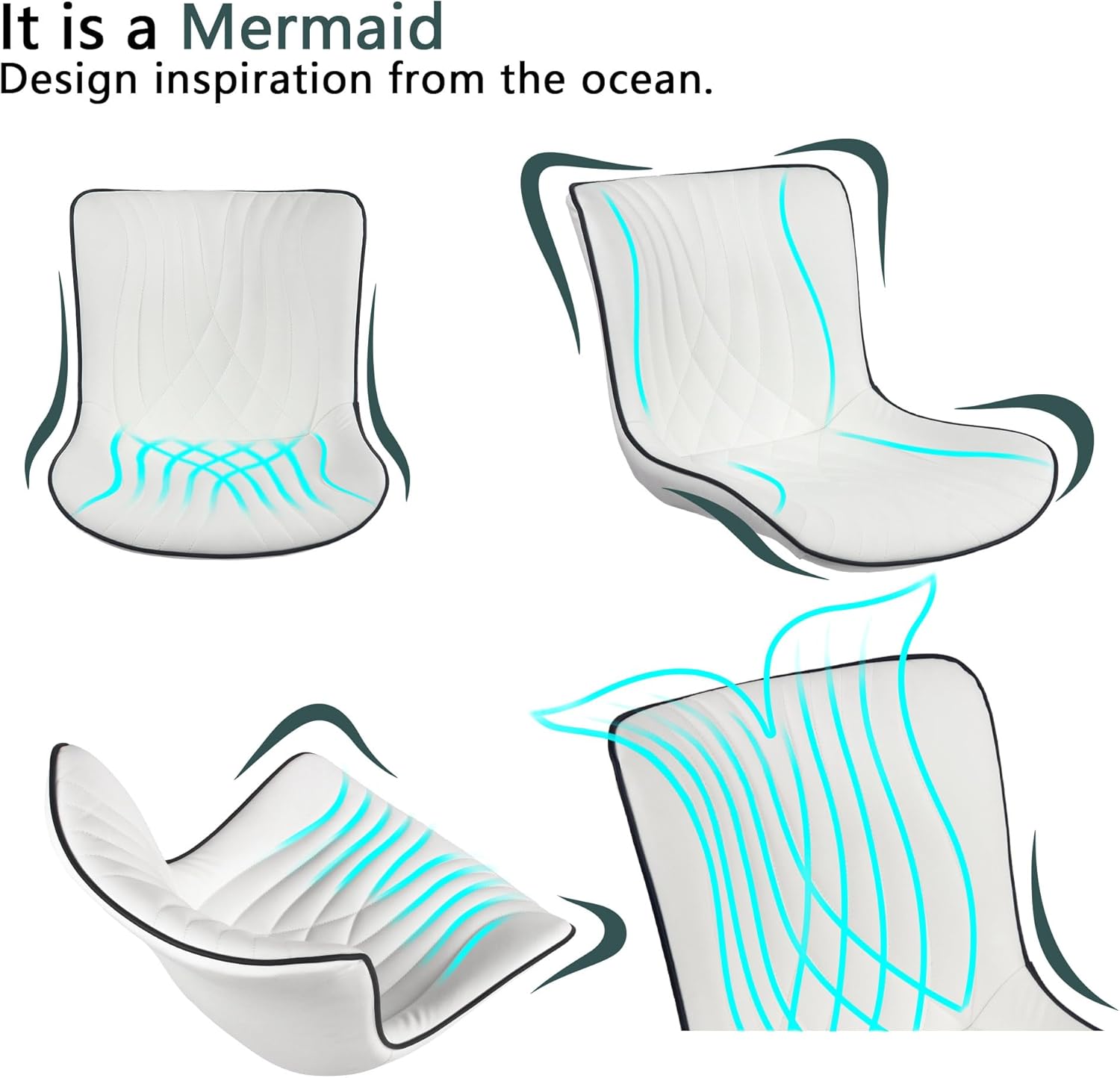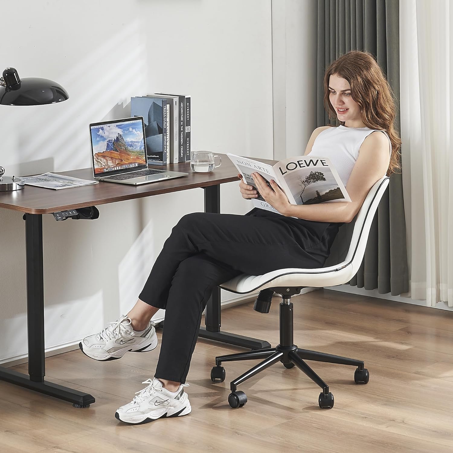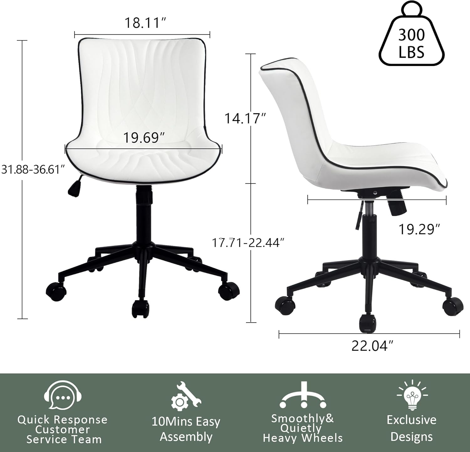 YOUTASTE Modern Armless Office Chair - Height Adjustable Swivel Rocking Computer Task Chair, Faux Leather With Wheels, Stylish Lounge Vanity Seat, White