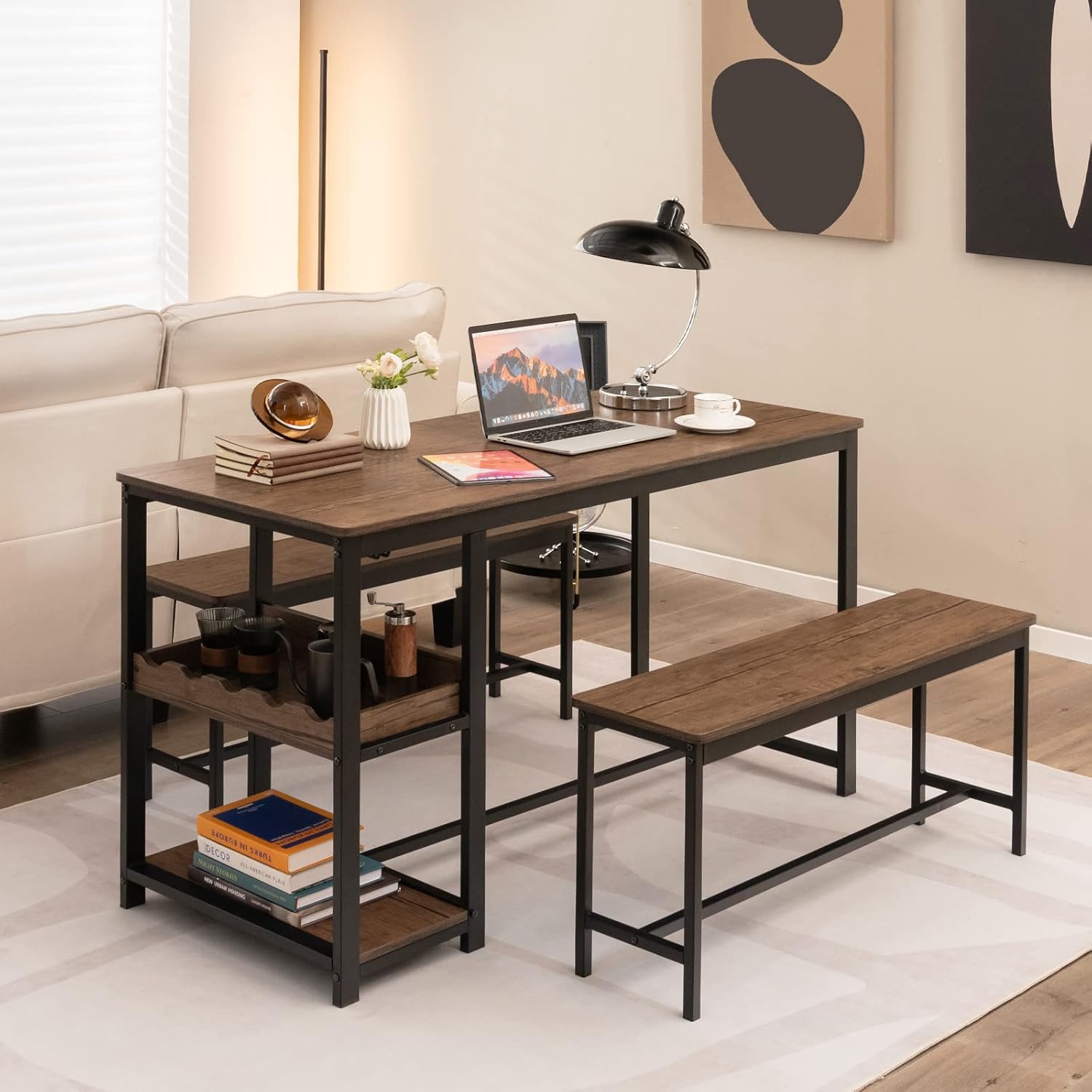 - 3-PIECE DINING SET FOR FAMILY: The 3 pieces dining table set includes 1 rectangular table and 2 long benches, which can seat up to 4 people comfortably, perfect for family meals or gatherings in your kitchen or dining area. Table size: 139 x 59 x 75 cm(L x W x H); single bench size: 100 x 27 x 45 cm (L x W x H).
