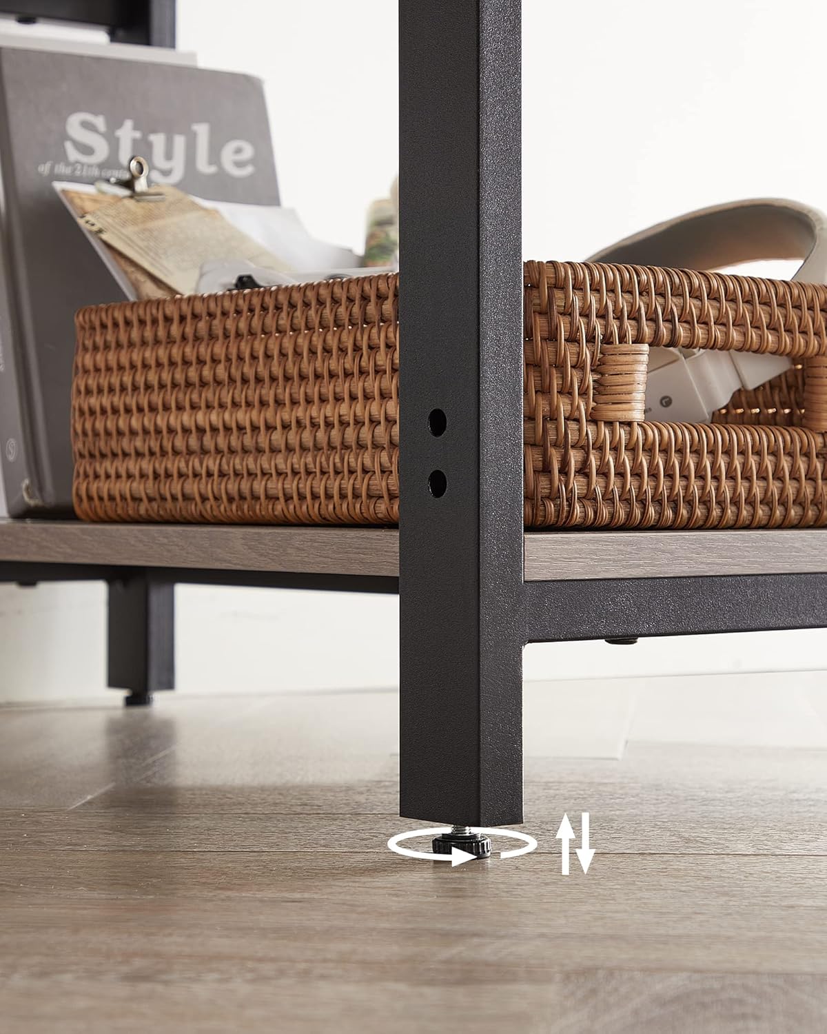 Woodx Computer Desk, Writing Desk with 2 Shelves on Left or Right, Work Table for Office Living Room, Steel Frame, Industrial, Greige and Black