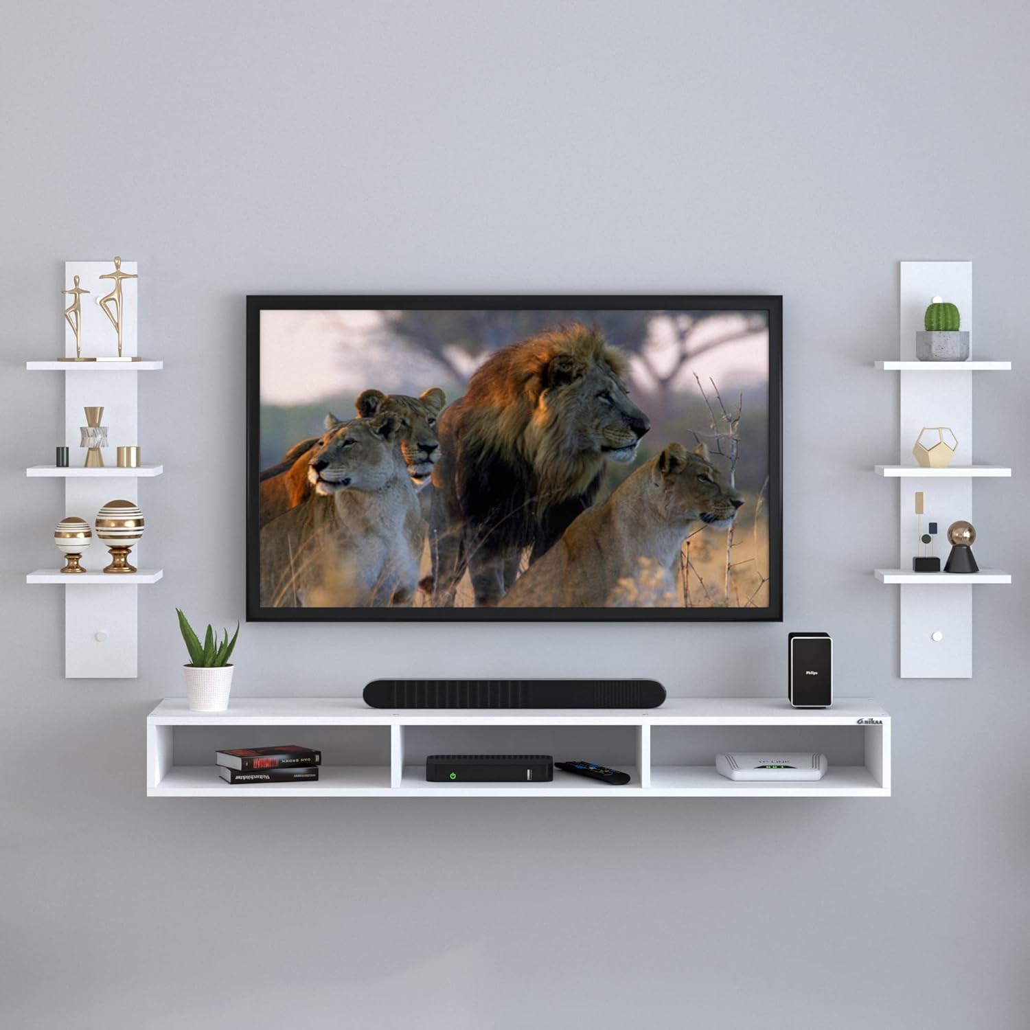 Anikaa Carlet Engineered Wood Wall Mount TV Unit/TV Stand/Wall Set Top Box Stand/TV Cabinet/TV Entertainment Unit (White)(Ideal Upto 40 Inch)(D.I.Y)