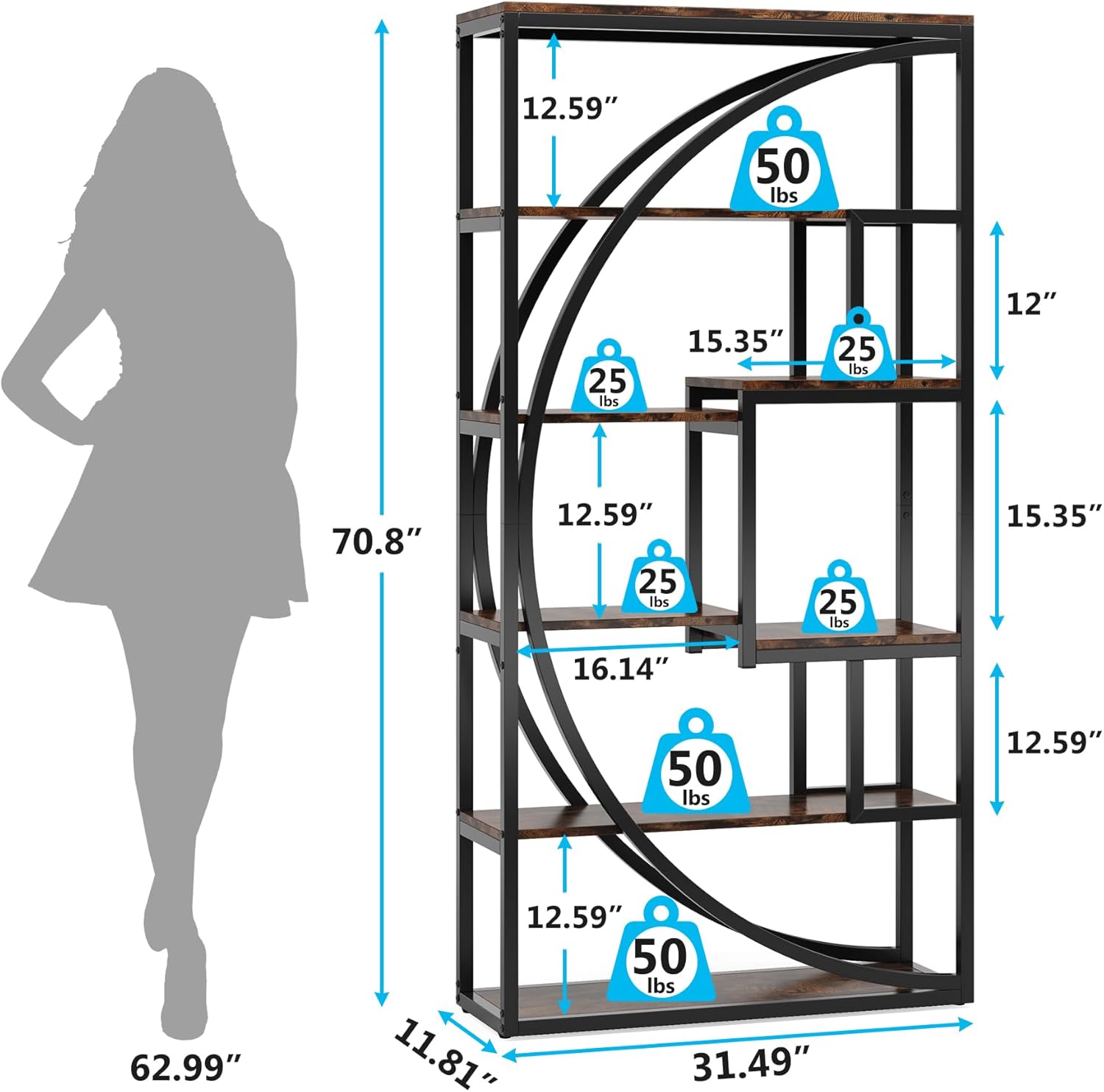 Tribesigns Bookshelf, Industrial 5-Tier Etagere Bookcase, 70.8 inch Tall Bookshelf with 8 Open Storage Shelf, Book Shelf Display Tack Shelving Unit for Home Office Living Room, Rustic Brown