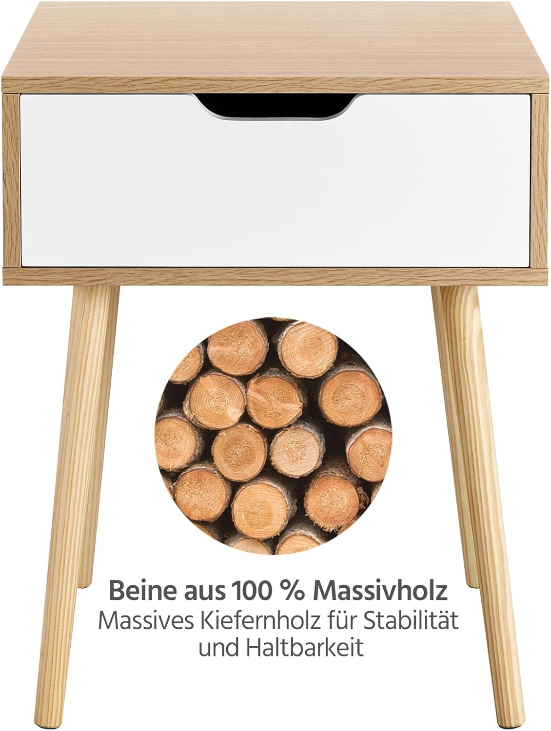 - LIGHTWEIGHT BUT STRONG - This bedside cabinet is designed to be lightweight but is made of sturdy and durable MDF wood, chipboard and solid wood. Table top load: 30 kg.
