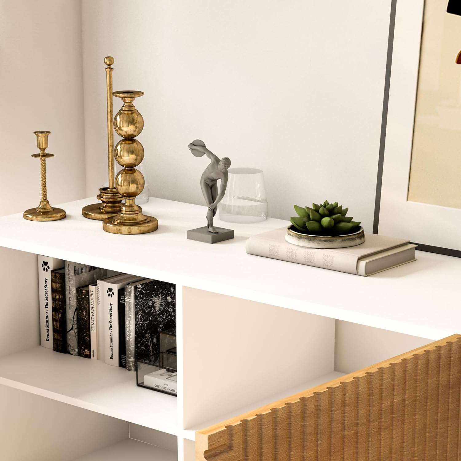 - Highly versatile piece: used as a credenza, entertainment center, sideboard, buffet cabinet, or liquor cabinet, and can be placed in various locations such as the hallway, kitchen, or behind a sofa. It also serves as a stylish TV bench that complements both boho and japandi styles.