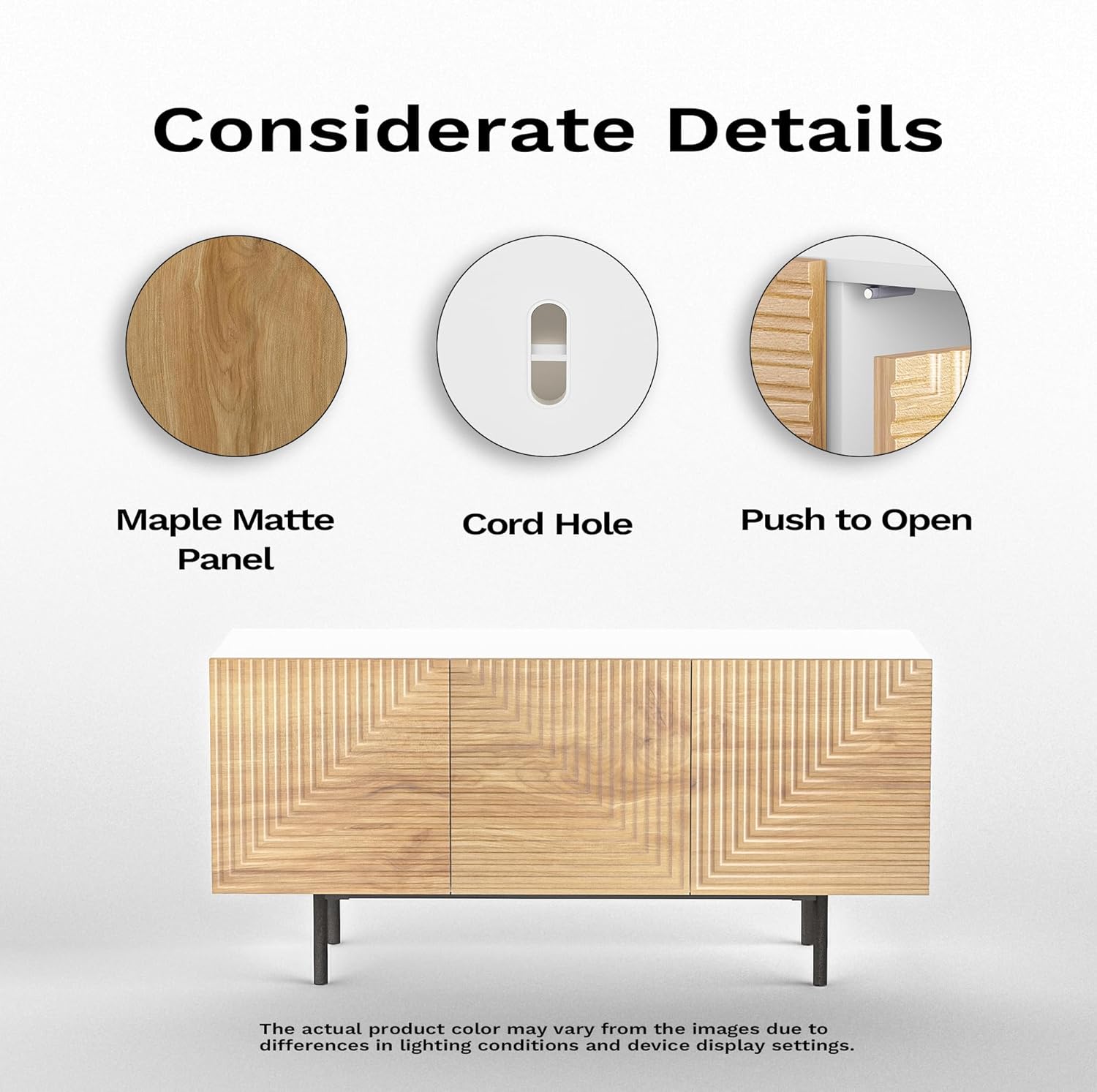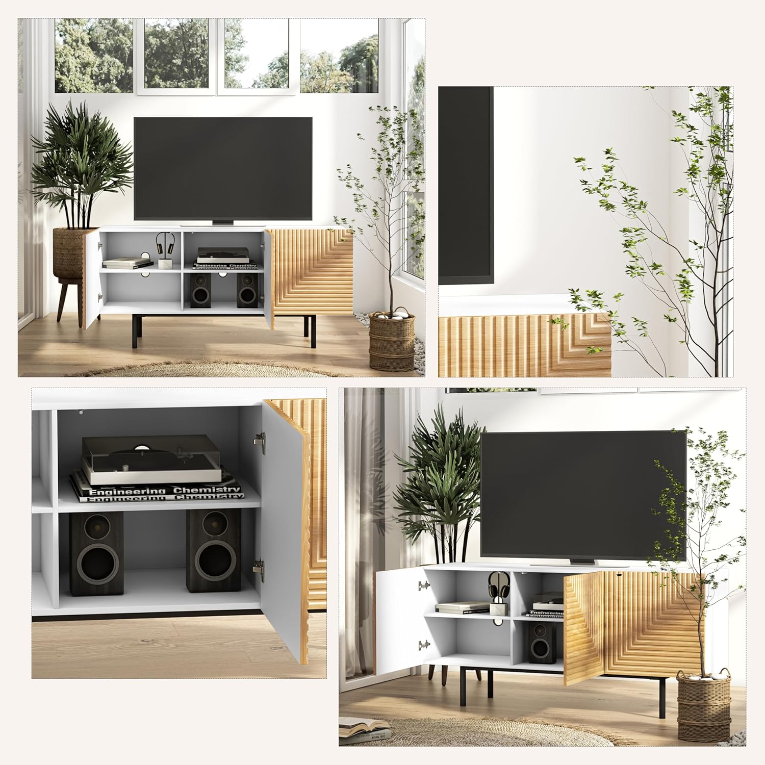 - Spacious Storage Sideboard: The TV entertainment uni with storage provides plenty of space behind 3 cabinet doors, with shelves inside for your different storage needs.