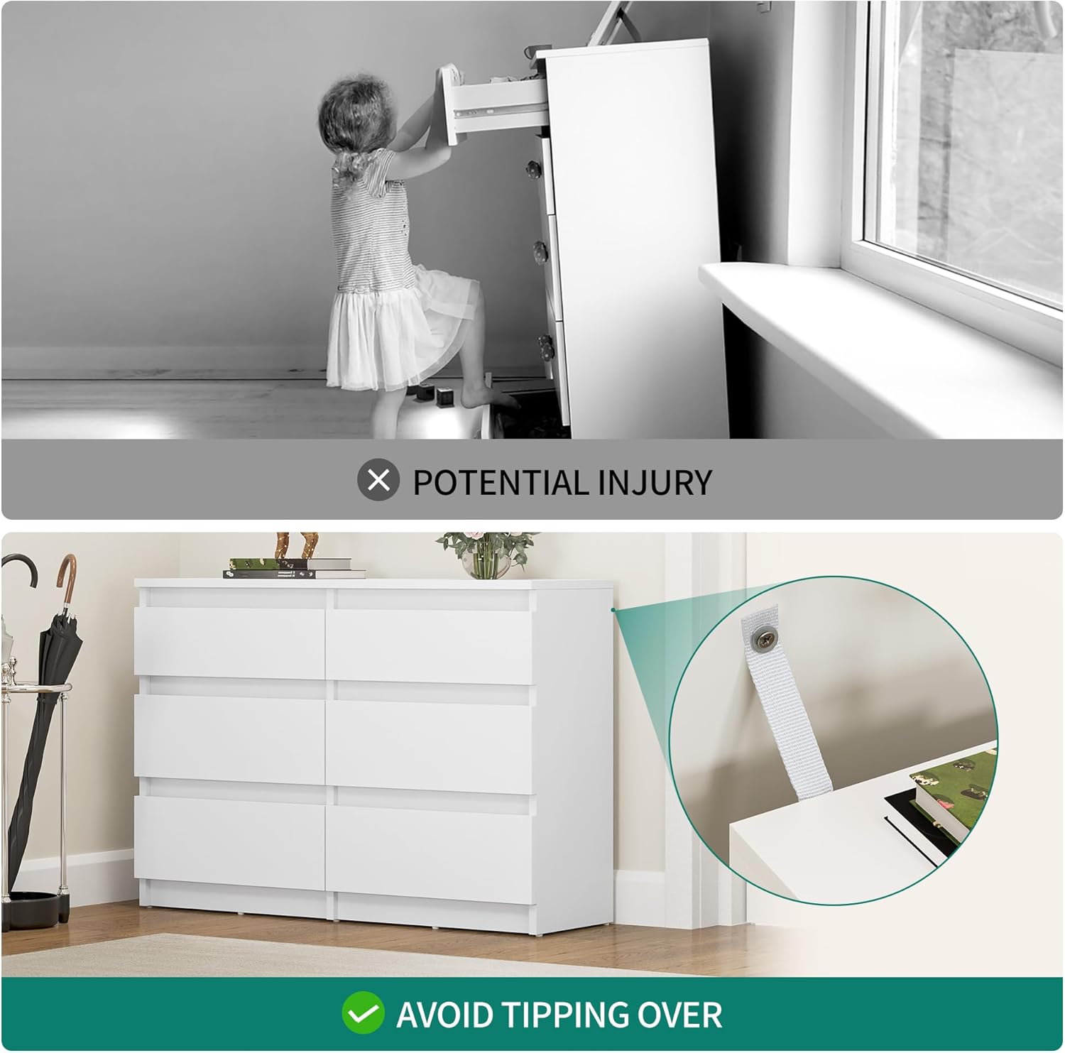 • STURDY AND SAFE - The dresser comes with detailed assembly instructions accompanied by easy-to-understand illustrations for a straightforward setup. Additionally, you can anchor the dresser to the wall using the provided anti-tip device, ensuring stability and preventing accidental tipping. This product is shipped in a flat pack for your convenience.