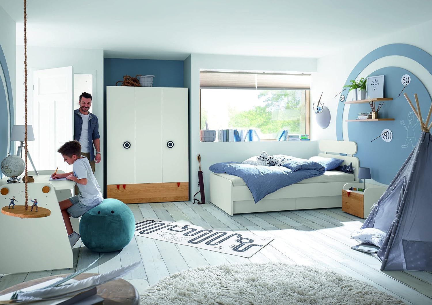 Included Components | 1 x FurniFlex Minimo Baby Cot with Slatted Base + 3-Door Wardrobe with Drawer, Snow White/Natural Oak1 x FurniFlex Minimo Baby Cot with Slatted Base + 3-Door Wardr… See more |