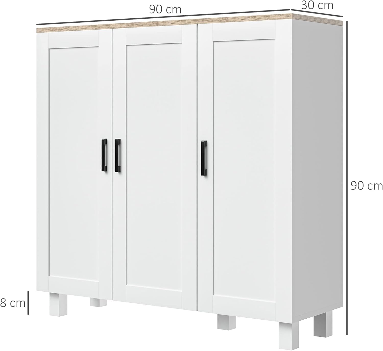 FurniFlex 3-Doors Nordic Style Living Room Sideboard Cabinet with Adjustable Shelves, 90 cm x 30 cm x 90 cm Size, White