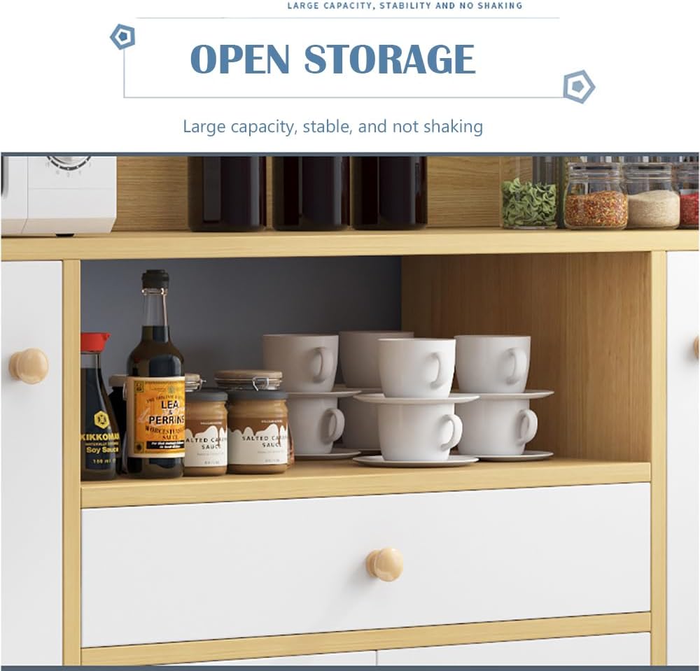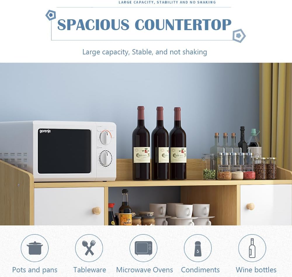 - *Multifunctional: Ideal for small living spaces, it serves as a microwave stand, bar cabinet, and pantry, providing ample storage for kitchenware, food items, and beverages.