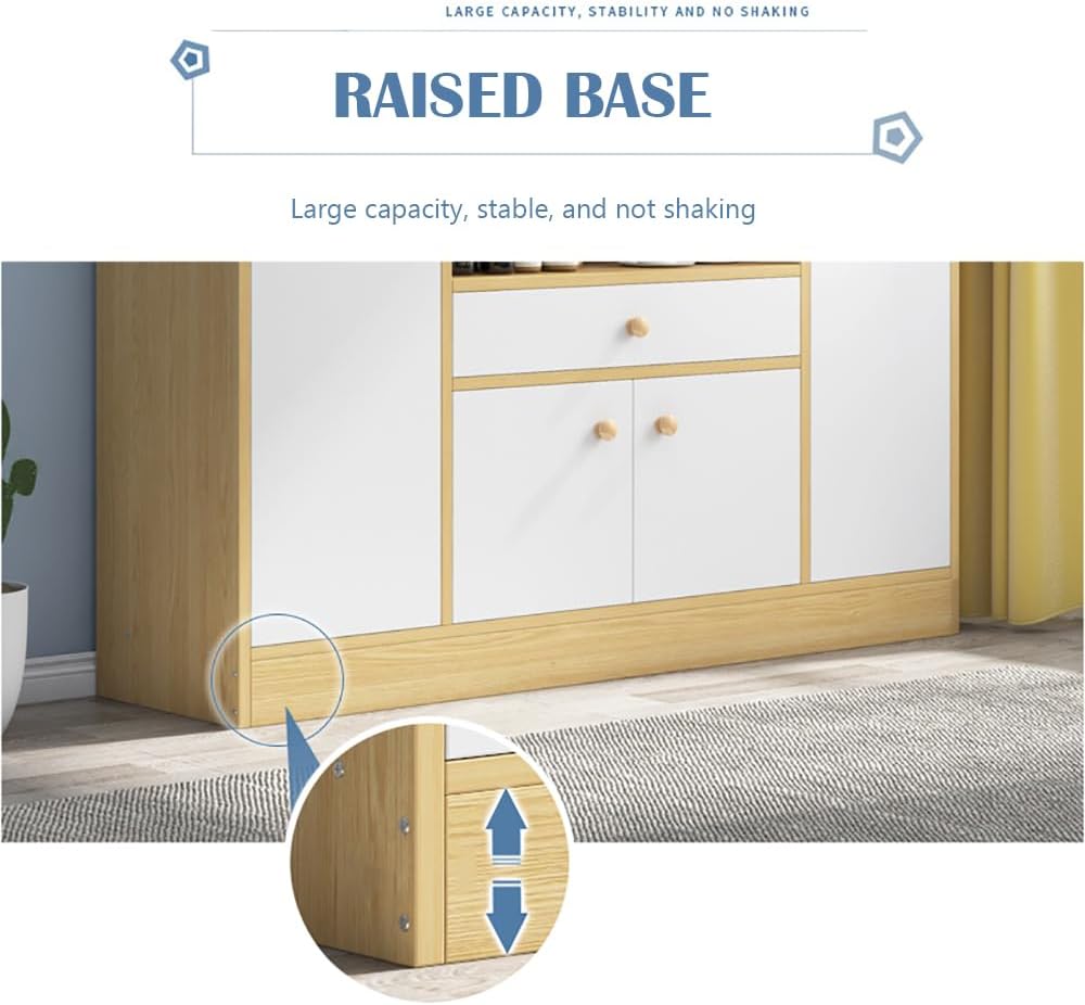 - *Space-saving Design: This versatile cabinet combines storage and utility, featuring open shelves to display decor items and closed cabinets for concealed storage.