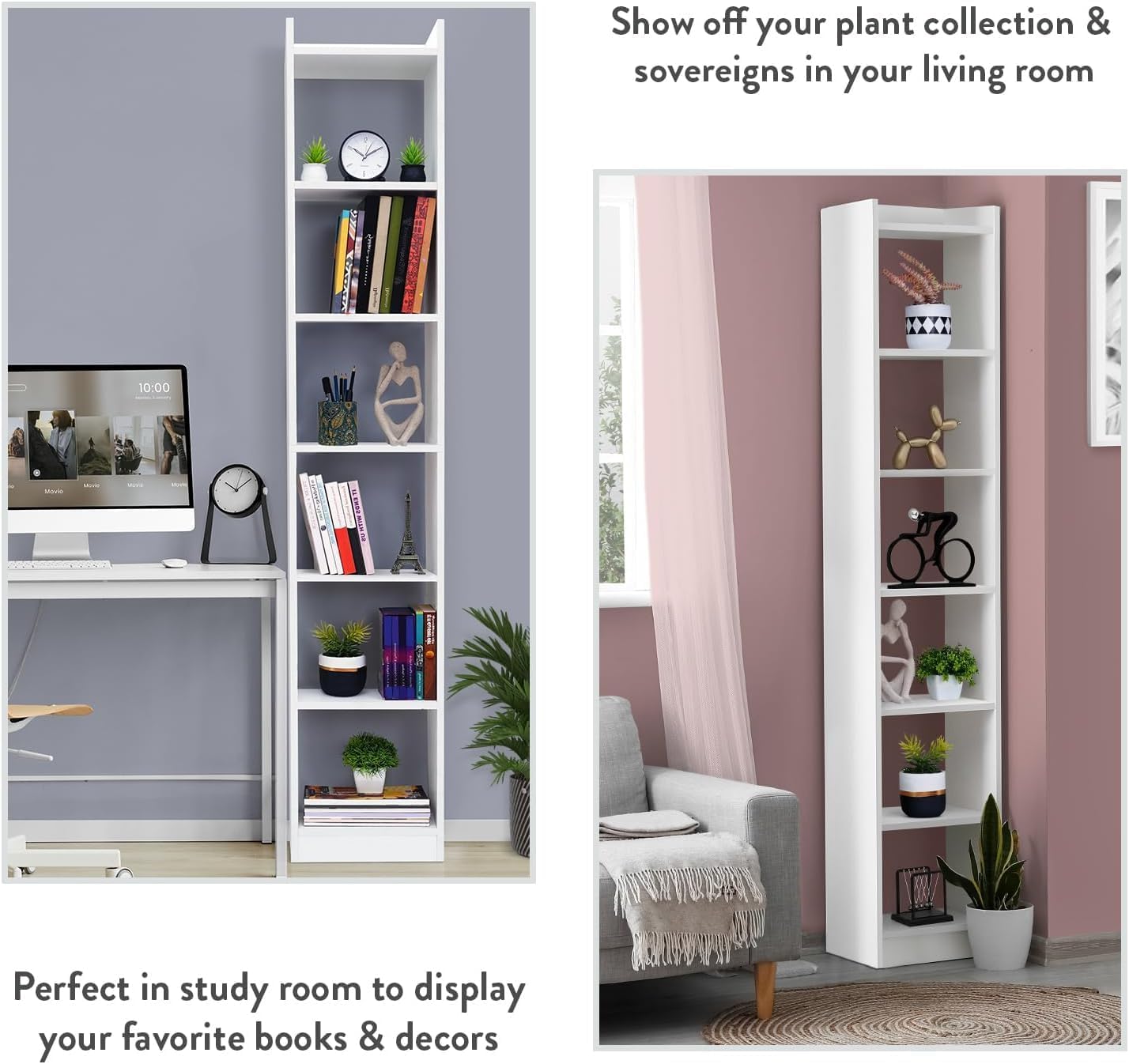 - 6 Layers Home Library Book Holder Geometric Multipurpose Wooden Storage Shelf for Bedroom Living Room Display (33 x 24 W x 180 cm - White) Home Bookshelf: Decorate your living room with a modern 6 layer vertical book shelf by About Space ensures stability and durability that will last you a lifetime. Its slim and elegant design will surely add a stylish touch to any decor