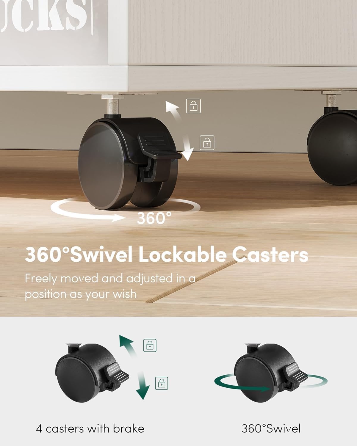 FurniFlex 3-Drawer Mobile File Cabinet with Lock, White