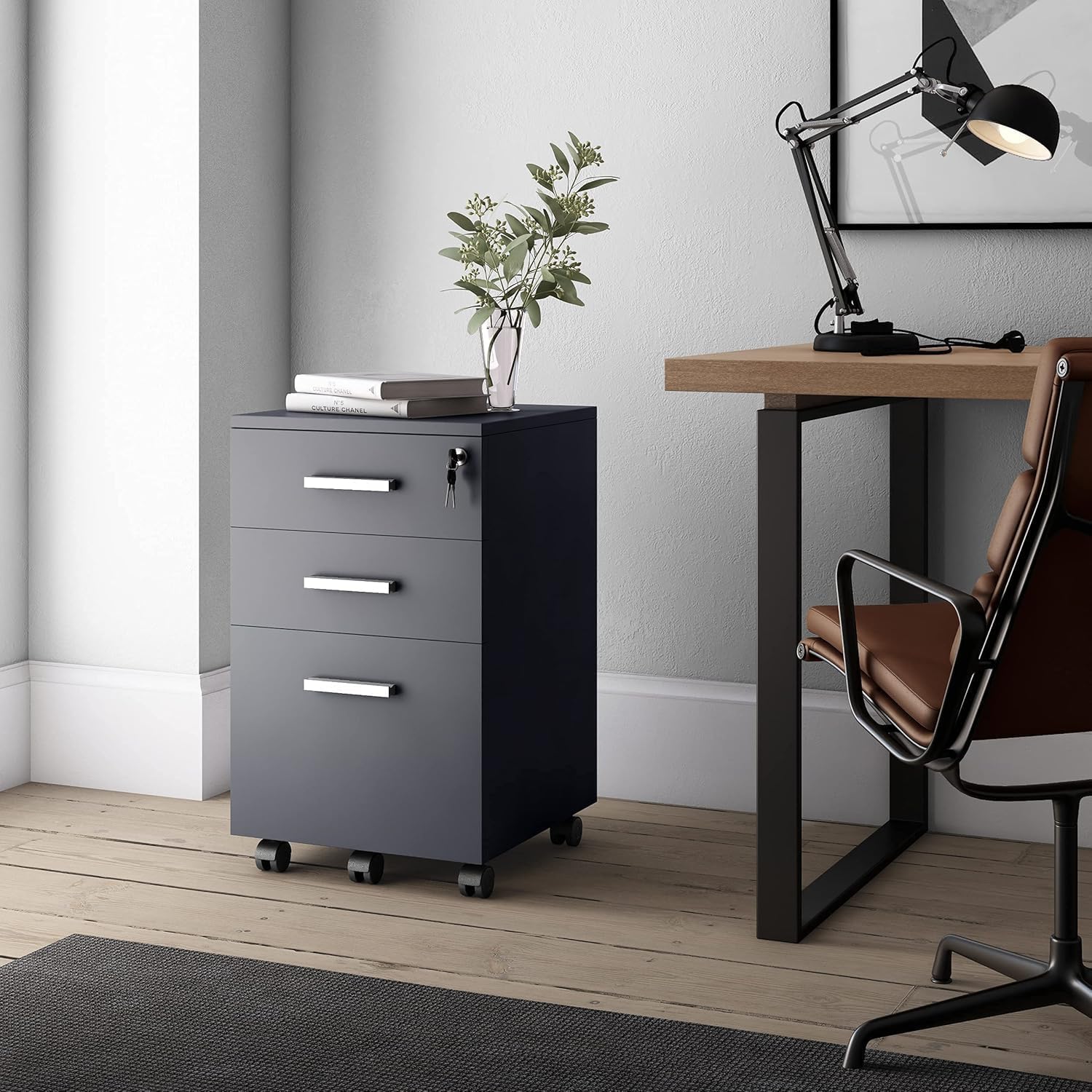 FurniFlex File Cabinet with Lock, 26-Inch Size, Black/Black