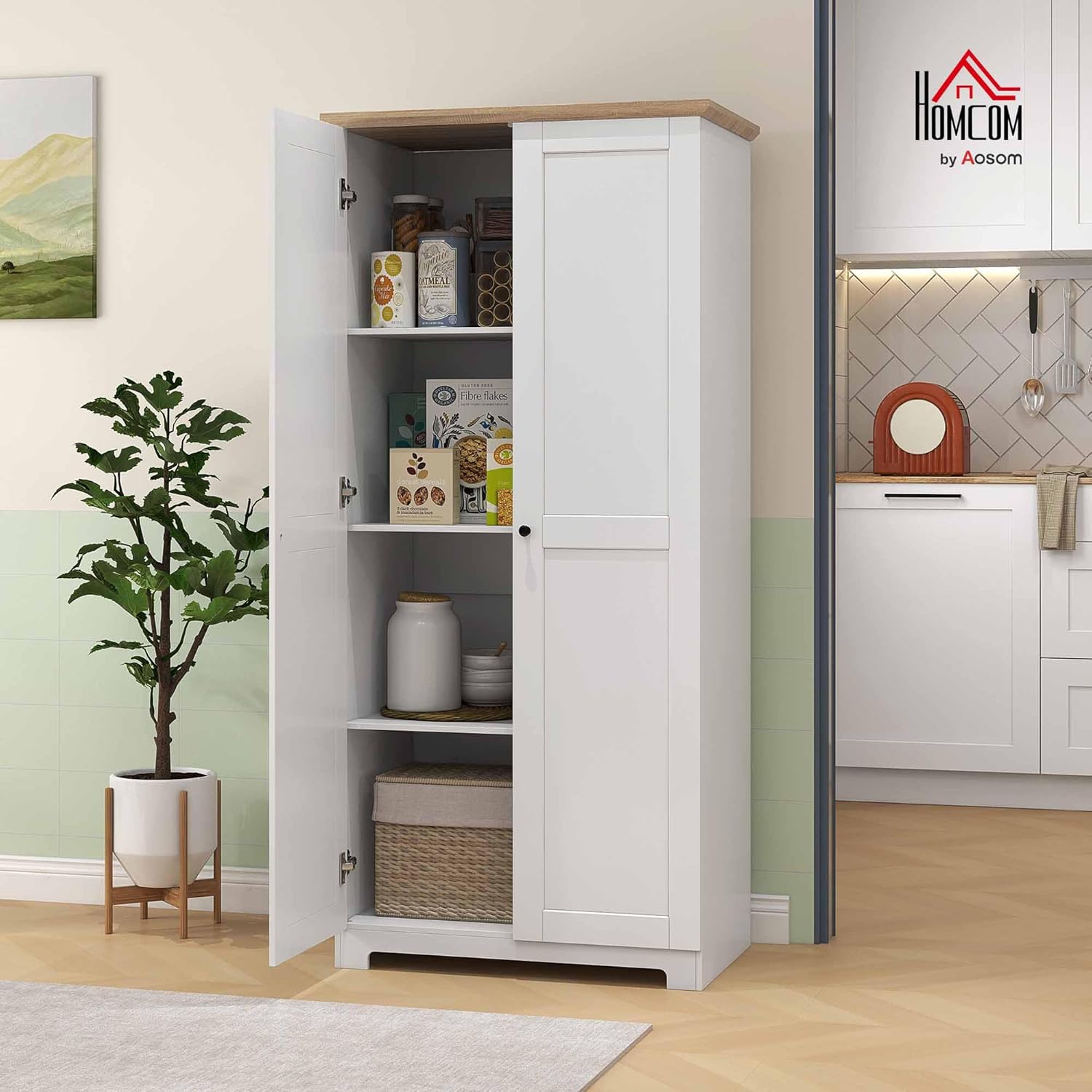 HOMCOM 172cm Wooden Storage Cabinet Cupboard With 2 Doors 4 Shelves White Living Room Bedroom Office