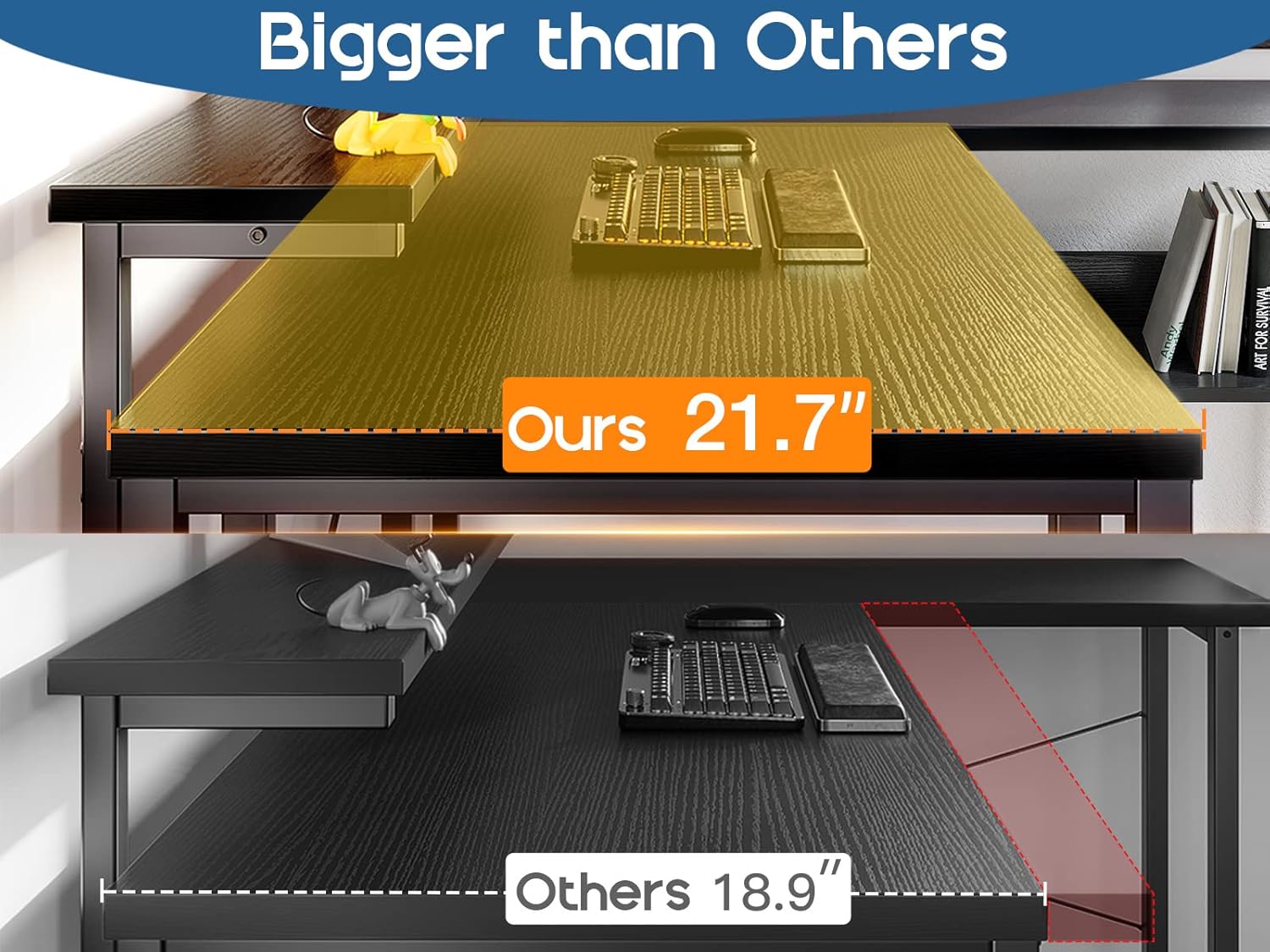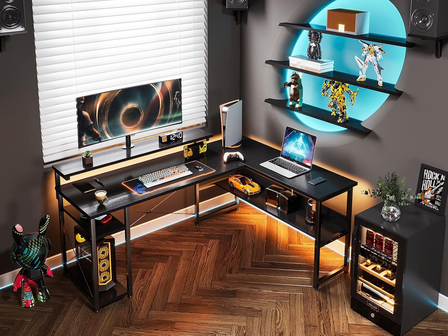 - 【Super Large Desktop】: The depth of the main desktop is 21.7 inch, which is larger than other common corner desk that is only 19 inch. The wide desktop of the l shaped gaming desk provides enough space to place your computers, books, plants, printers, laptops, keyboard and other daily equipments.