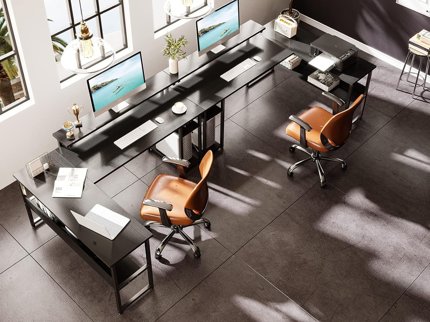 - 【Ample Storage Space】: The l shaped desk with storage is designed with under bookshelf and two-tier storage shelves, providing ample space to store computer tower, books and office suppliers. The adjustable monitor stand can hold 2 monitors and other accessories, and allows you to choose a height that fits your comfortable angle to avoid neck and back pain.